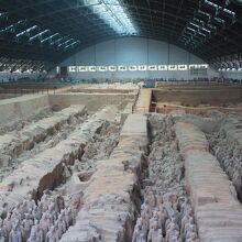 ドームで保護された広々とした坑道の中に何千もの白茶色の兵馬俑がずらりと並び、素晴らしいものでした。