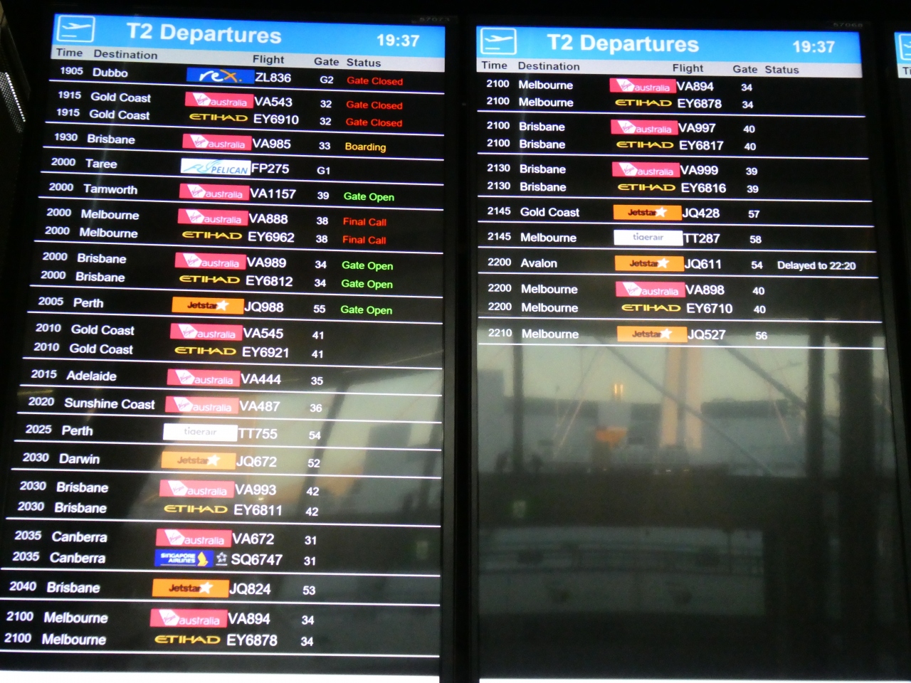 搭乗便はVA999便でシドニー21:30発のブリスベン行き最終便です。