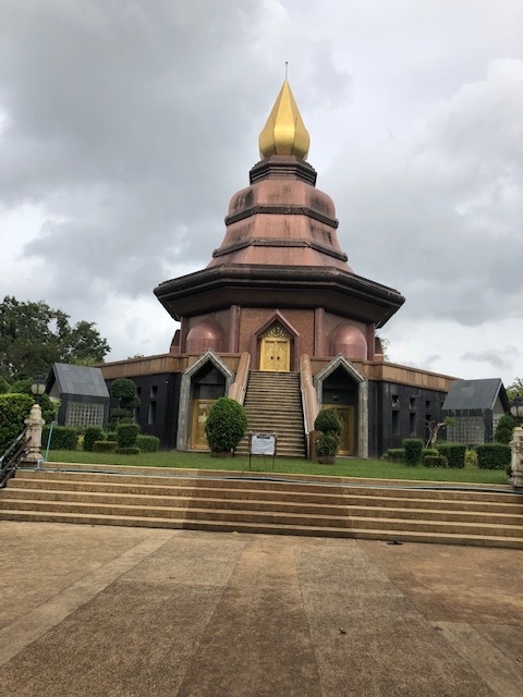 トラートの町はずれにあり、広大な境内に建つトラートの有名寺院です。もともとは学校として建てられ、トラートの教育の父の高僧3人が祀られている。敷地の中には大きな池のほとりには仏塔が。緑の木々が生い茂り、厚さをしのぐ市民のオアシスとなっている
