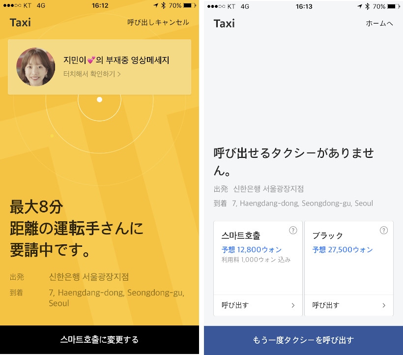 事前にアプリ登録は済ませて、市庁から初めてカカオタクシーを