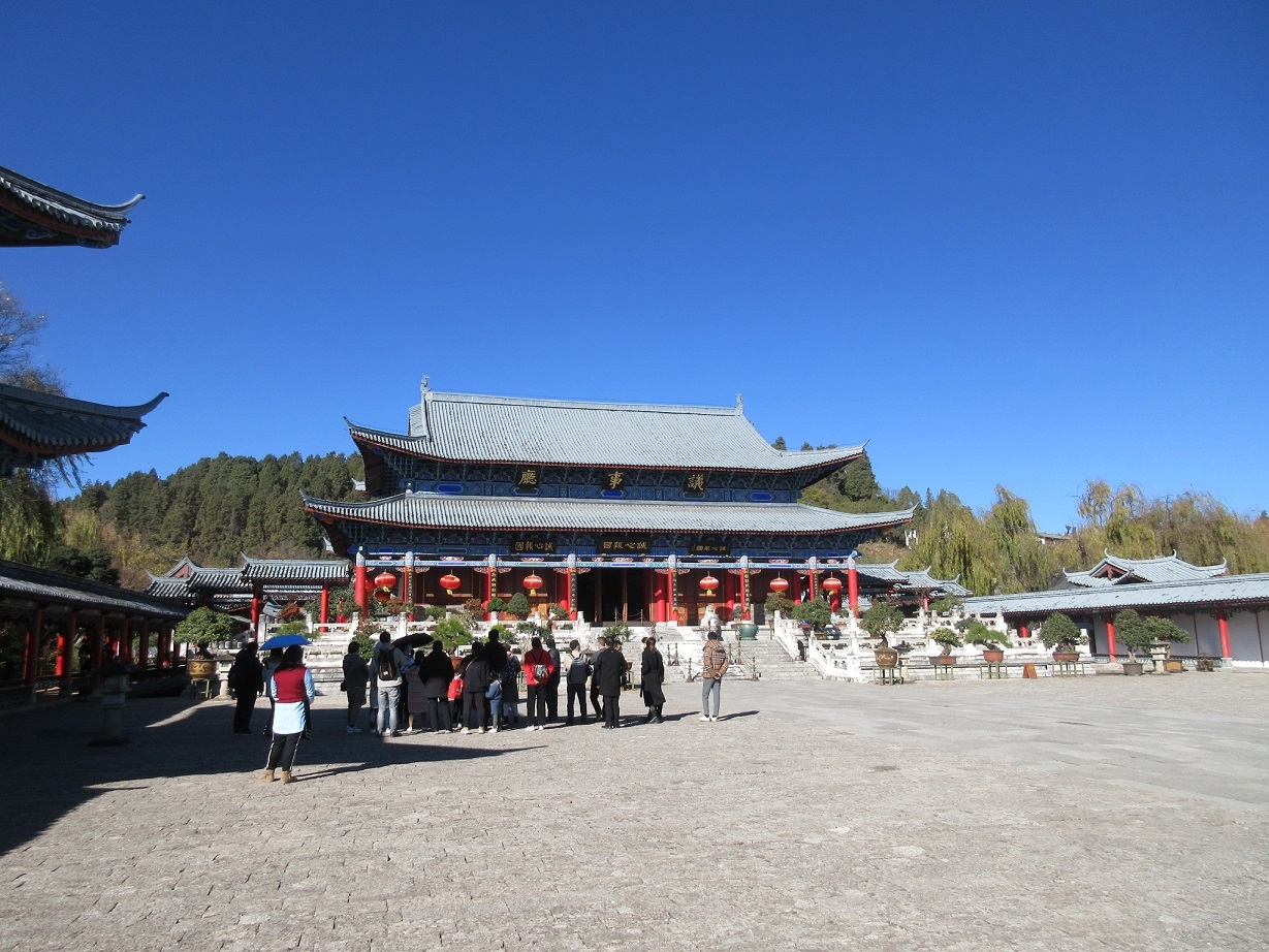 麗江古城のへそともいえる四方街から南に下がった場所にあり、この地を治めた役所があった場所です。今は再建された極彩色の建築が並びます。観光地として整備したのでしょうが、映画のセットと何が違うのだろうかと首をかしげてしまうような、観光スポットでした。40元(約620円)の価値は感じられません。