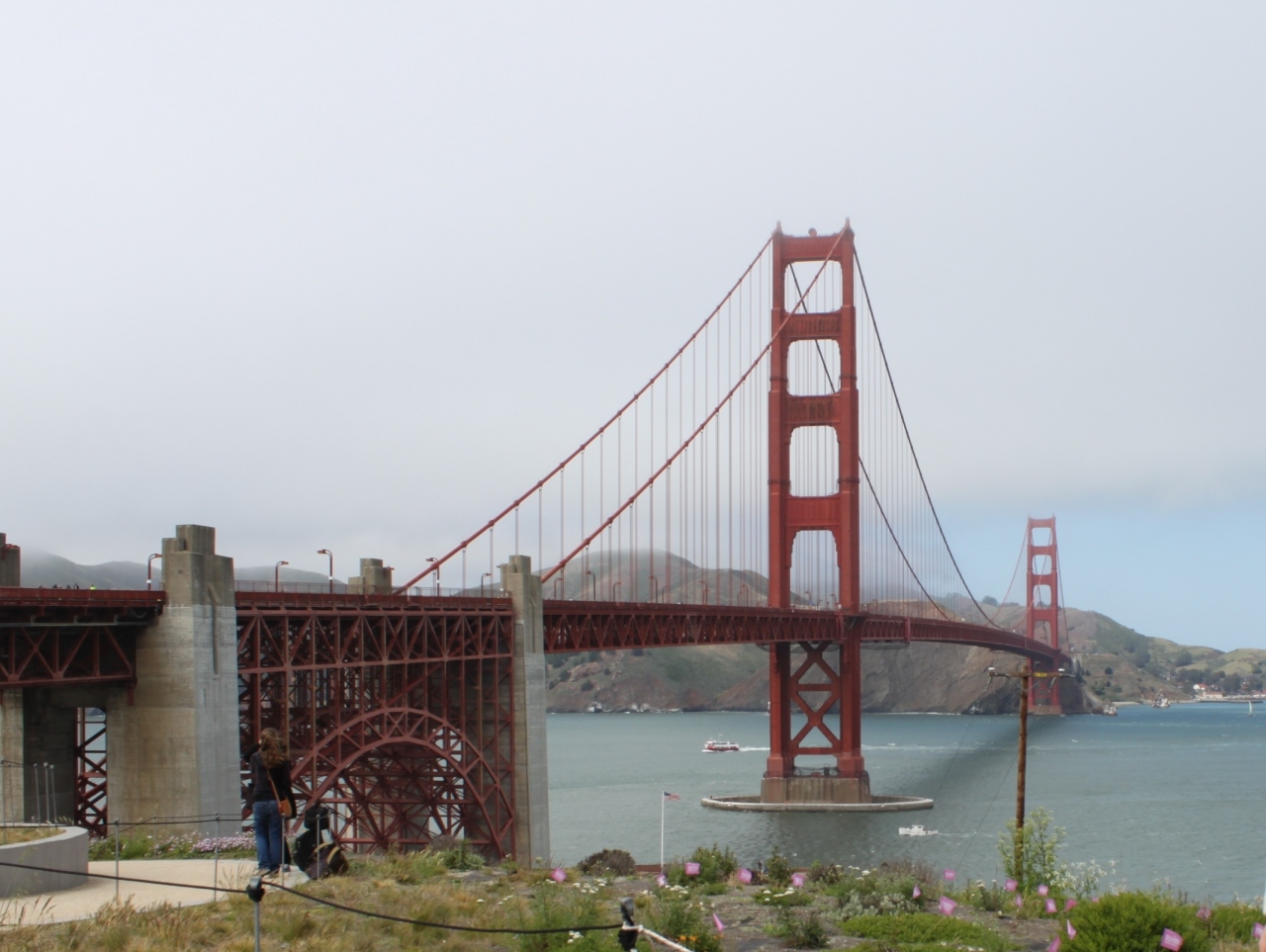 ゴールデンゲートブリッジの写真撮影スポットはいくつもありますが、一番好きなのは橋の起点となるウェルカムセンター。この施設自体はいわゆる観光案内所で、書籍、DVD、マグカップなど橋をモチーフとしたお土産も販売しています、周辺の花々も綺麗