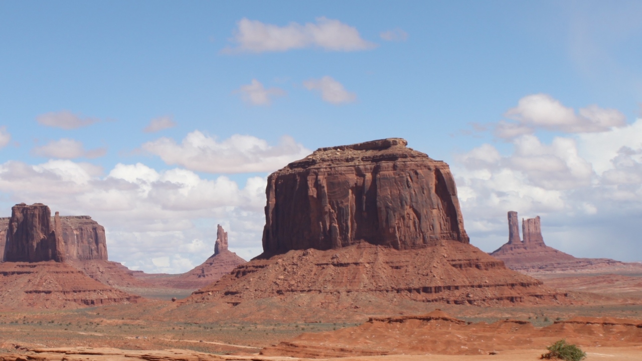 ザ・ビューホテルの横にあるビジターセンターは、モニュメントバレーを代表する景色、メリックビュート、ミットの形をしたライトミトン、レフトミトンが見える絶景ポイントでもある。お土産を買うならここのショップをすすめ