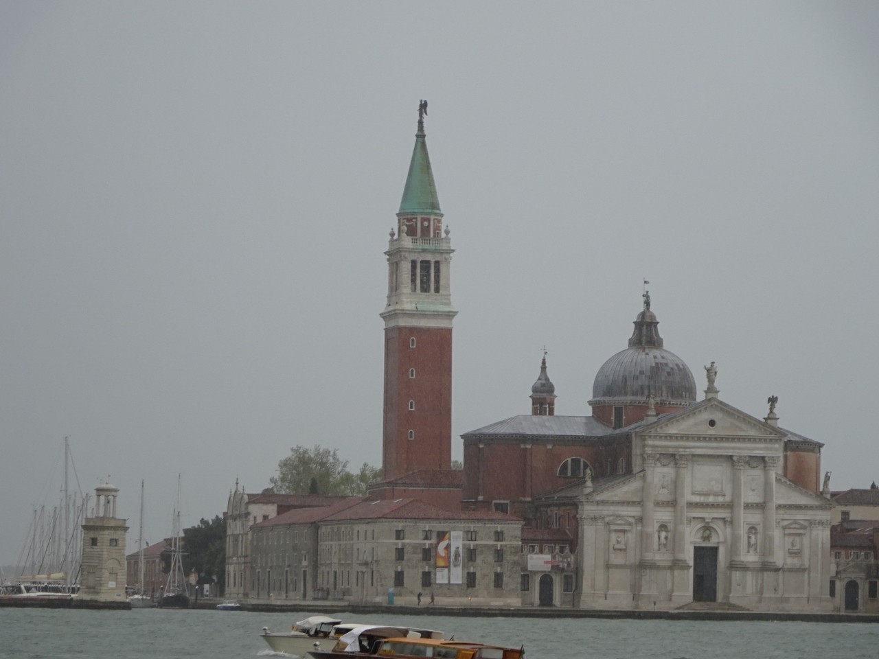 ヴァポレットからでも鐘楼が見えますが、サン・ジョルジョ・マッジョーレ聖堂にも同じような鐘楼があって、違いはサン・マルコ広場のは尖塔の頂上に金色の像があることです。