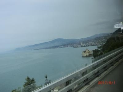 モントルーを過ぎると直ぐに見える湖にあるお城で12世紀に建てらたそうです。