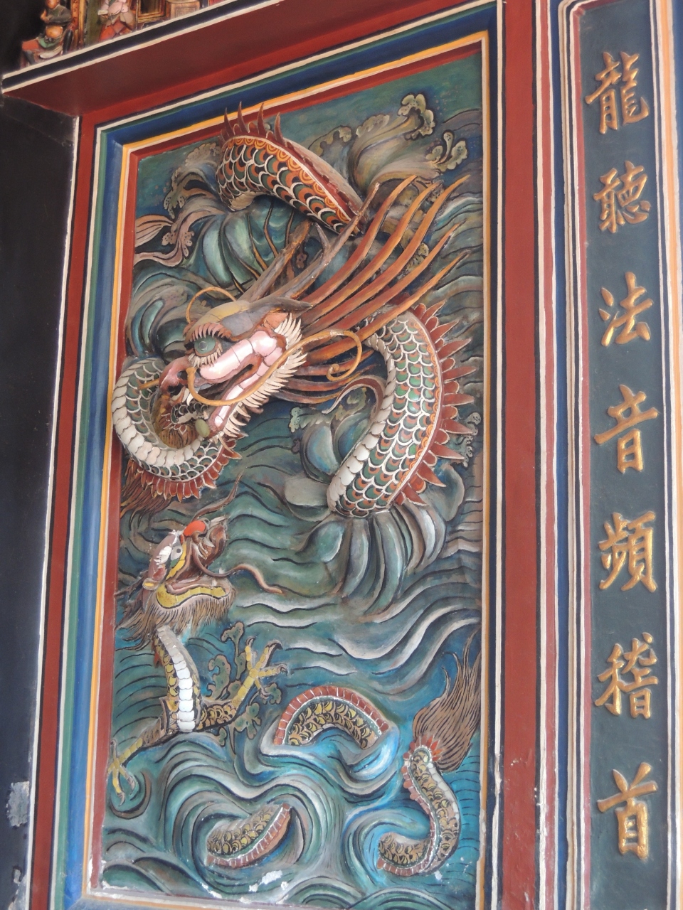 ジョンカーストリートにある寺院。日本の寺院と言えば、派手な色彩のお寺は数少なく探すのが大変。ところが香港・台湾・タイなどでは明るい色彩の寺院は珍しくない。特に、本堂入り口の横にある龍の彫り物が素晴らしい。また、屋根の上部分の装飾が煌びやかで、人や動物がリアルに彫られている。オフシーズンなのか、観光客は意外と少なく、地元の参拝者のほうが圧倒的に多い。