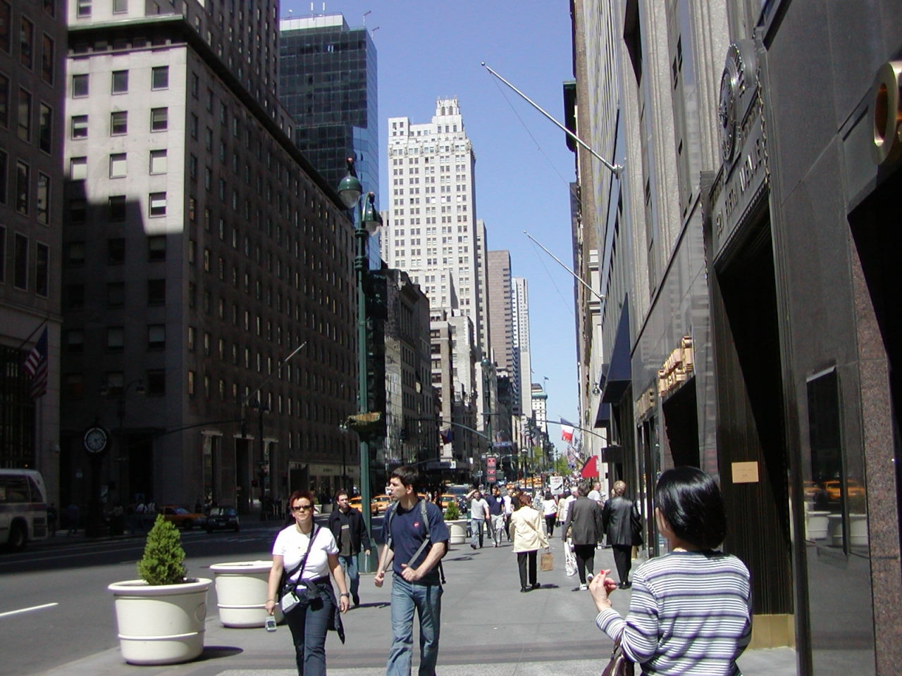 ニューヨークは5番の目のような交通道路になっています。日本でいえば銀座の中央通りで、各国の有名ブランドショツプが軒を並べていますし、美術館や教会もあり、人の流れが絶えません。世界中で展開するユニクロの出店もあります。