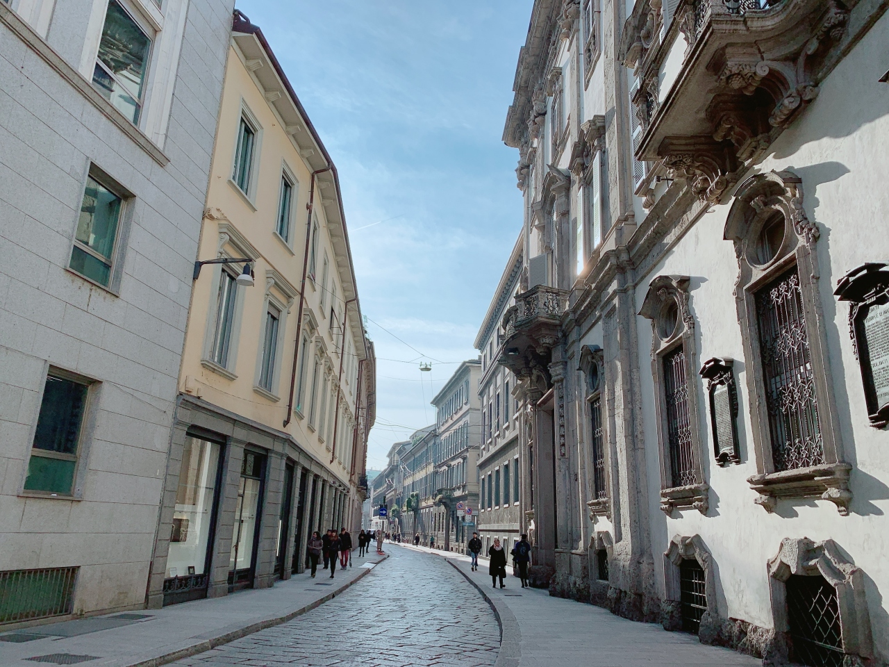 ブレラが大好きです。ミラノの中心部に行ったら絶対に立ち寄りますね。美術館もあるしステキなお店も多くてうろうろするのが楽しいです。ディスプレイもステキなので見るだけも幸せになります。この石畳はスニーカーに限りますが