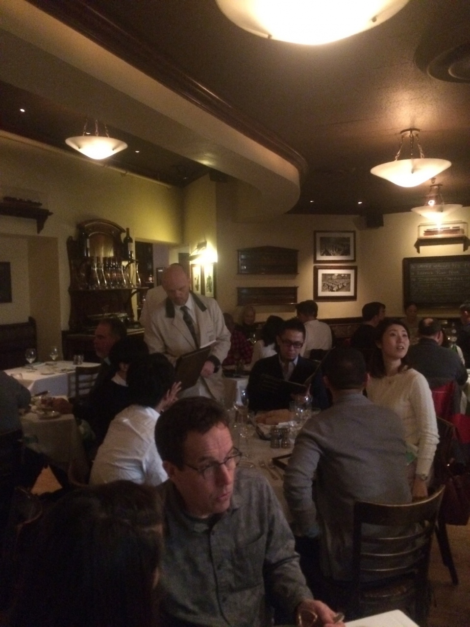 日曜日の夕方に行きました。友人が予約をしていてくれたのでスムーズに席に着くことが出来ました。日本からNYに移住してきてからまだ日の浅い友人は、「プラダを着た悪魔に出てたレストランだ~」と大感激していました。私達はステーキをポーターハウスとプライムリブの2皿をオーダーしました。3人で食べたのですが、流石に量が多かったです。残ったポーターハウスを家に持ち帰って次の日にオーブンで焼いて食べました。焼き直したお肉でもジューシーで美味しかったです。