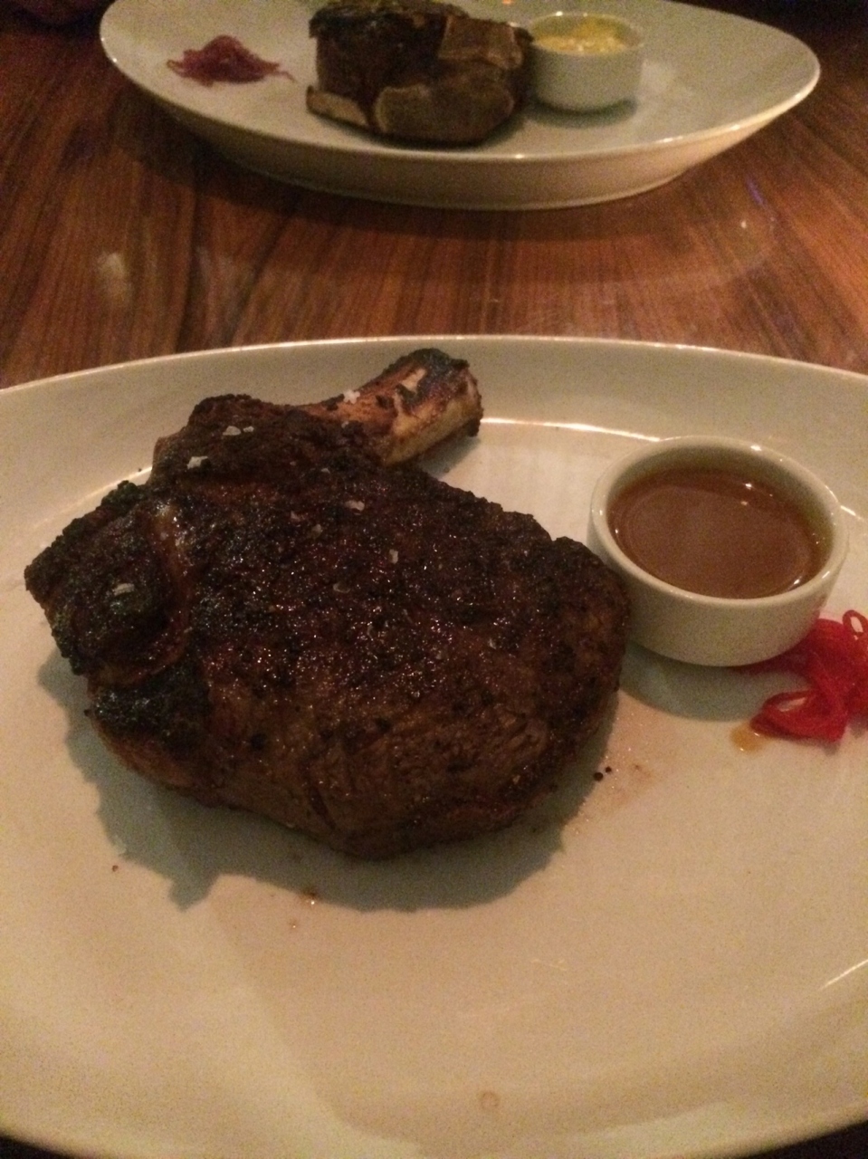 土曜日の夜に行きました。吹雪いてる寒い夜でしたが、店内は沢山のお客様達で賑わっていました。席に着くまで時間があったので店内のバーでカクテルを飲んで待ちました。カクテルも美味しかったです。ステーキハウスなのでステーキも美味しかったですが、、コットンキャンディー(綿飴)のデザートが斬新でした。