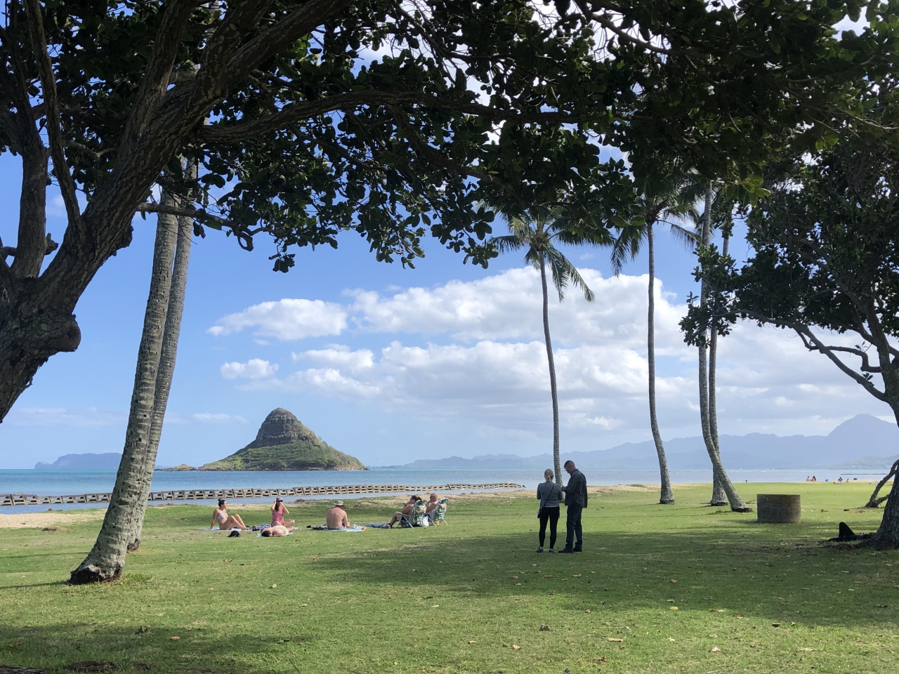 クアロアランチの目の前にある大きな公園で、週末にはテントを立ててロコの家族が楽しんでいます。