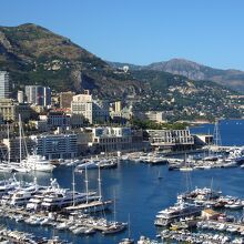 このモナコ港Port Herculeは、青い海と晴れ渡った青空がとてもよく似合い、散策するのにとても気持ちのよい港。この港は世界屈指の高級停泊地であるため、間近には高級クルーザーを、また湾の先には有名な大公宮殿(の建つ崖)やカジノなどの美しいモナコの街並みを臨むことができた。