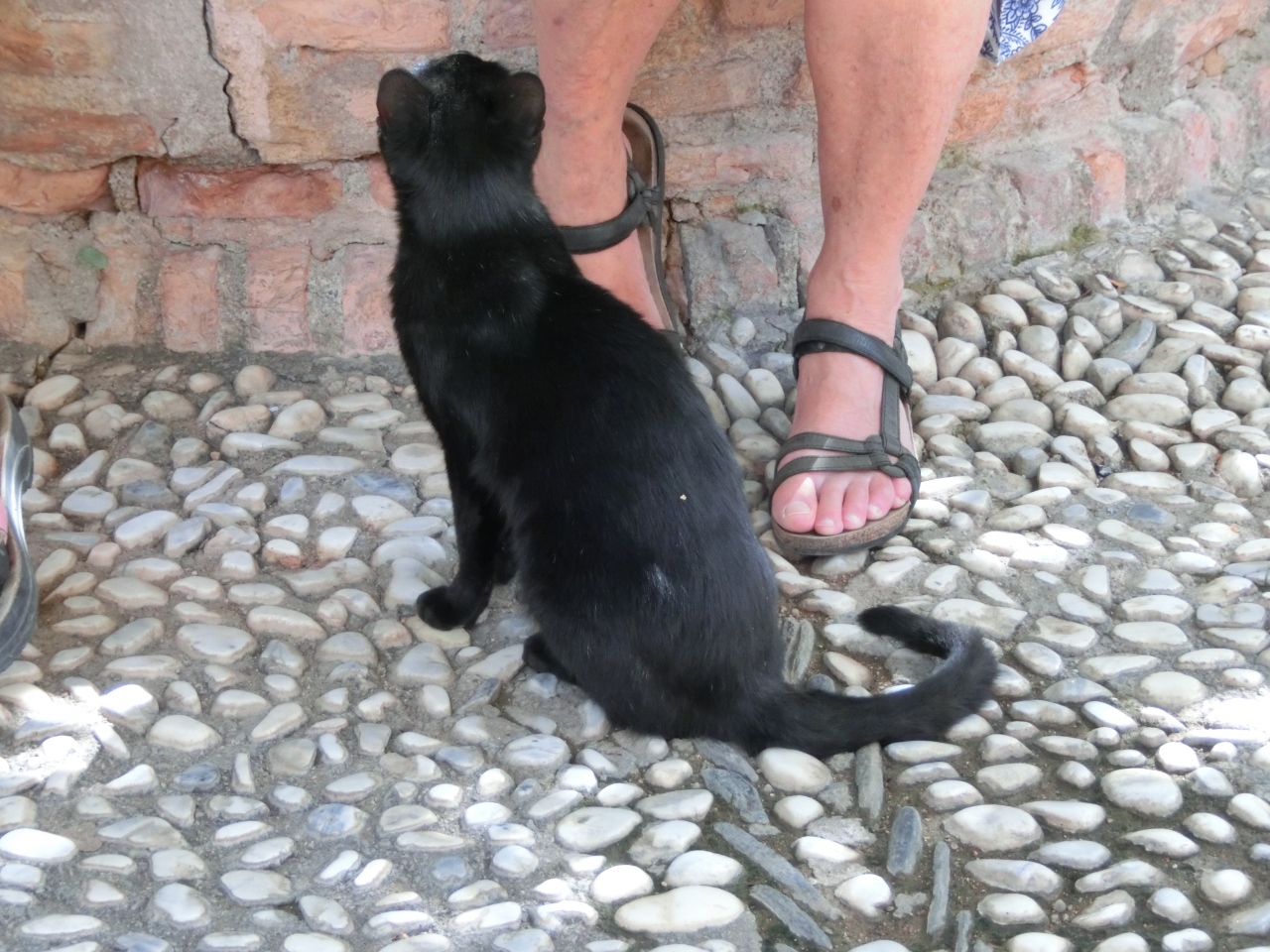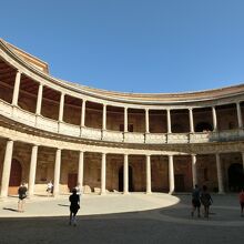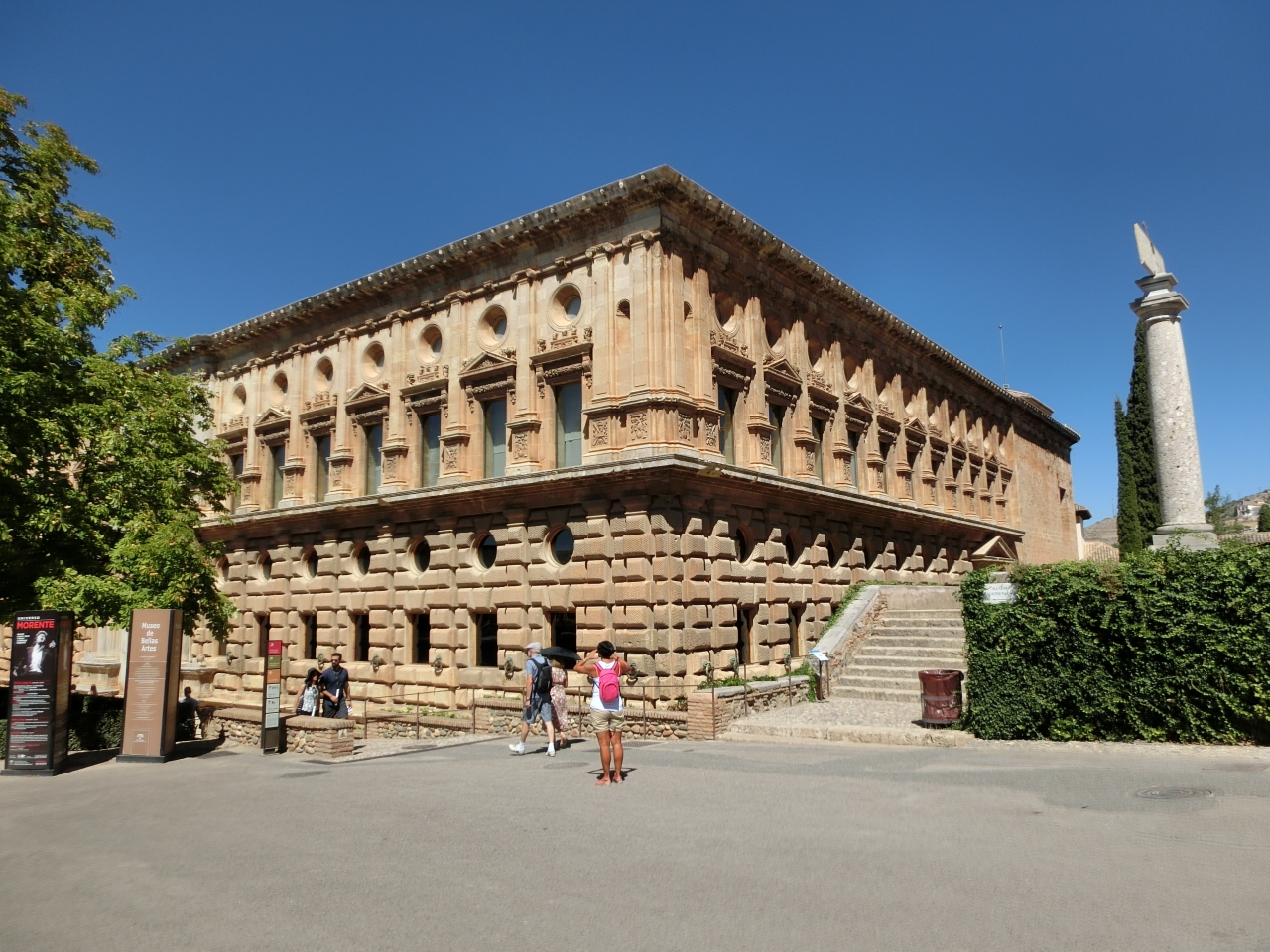 スペインをヨーロッパ最強国へ押し上げることになるカール5世が、新婚時代にアルハンブラ宮殿の一部を取り壊して建設した16世紀ルネサンス様式の宮殿です。外観は、巨大な切り石を積み重ねた正方形の建物で、辺りを威圧していましたが、中に入ると一転、円形のパティオがあり、2階建ての回廊を散策することができました。宮殿横の植栽のあたりで、観光客からのおこぼれを期待して生計を立てている野良猫たちに出会うことができます。