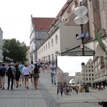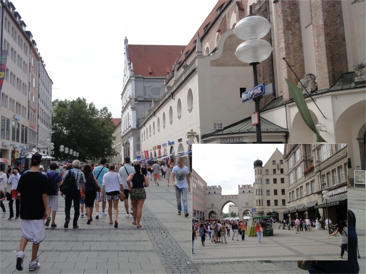 ミュンヘンの中心地マリエン広場から、ペーター教会を背にして、ノイハウザー通り(Neuhauserstraße)を西のカールス広場に向かって歩いた。この通りは、まさに、旧市街の中心部を通る繁華街で、道幅も広く、両側にはアパレルやレストラン関連の店が立ち並ぶ目抜き通りで、歩行者天国になっていて、多くの人々で賑わっていた。
