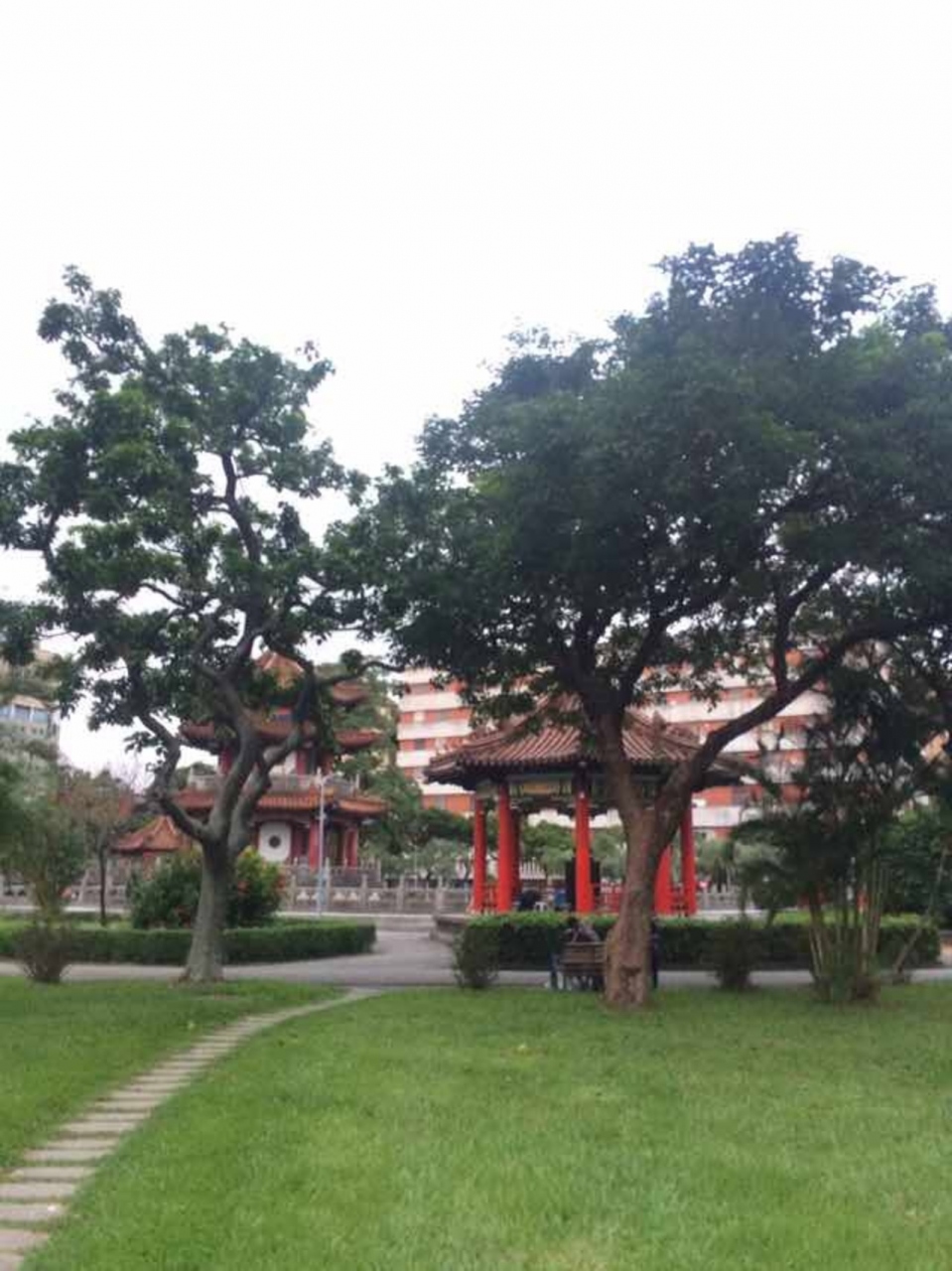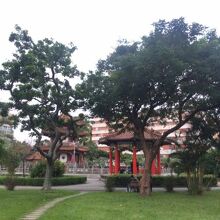 涼亭は台北市の二二八和平公園にありました。真ん中辺にありました。真っ赤な建物で、円形になっていました。赤い楼閣があり、その中にも彫刻や絵がなされていて、一種の芸術のようでした。上の方が綺麗で、見上げて観察しました。