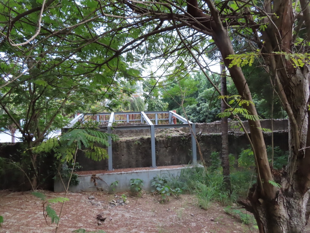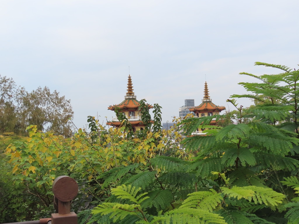 ネットを見ていたら蓮池潭傍の小山に永清塔舊址があるみたいので探しに行きました。この場所は、勝利路から龍虎塔へ行く時、蓮池潭の反対側にある石垣のある小山ですので、龍虎塔行く際には、皆さんもここを通られるのでないでしょうか。入口はいくつかるようですが、勝利路沿いからの入口から入りました。入口に建てられていた表示板には、観光平台と書かれてありました。ここは、勝利路の反対側にある亀山公園を小規模にした感じでした。山道を登っててっぺんまで行ってみましたが、永清塔を見つけることは出来ませんでした。眼下に広がる、蓮池潭の風景も、生い茂る気が邪魔して、少ししか見ることは出来ませんでした。ネットで調べてみると永清塔は、1964年に造られ、1996年に無くなった様で、塔の痕跡が、僅かに見ることが出来ました。永清塔の画像は、著作権があるの掲載することは出来ませんが、検索すると見ることが出来ます。