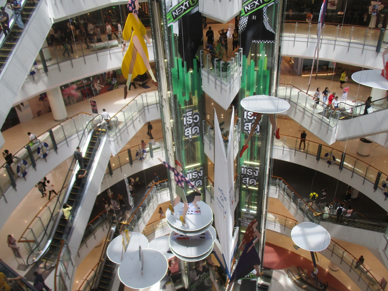 通常でも日本人が多いショッピングセンターですが、GW期間中ということもあり、さらに日本人の利用客が多かったです。併設された伊勢丹のコスメ売場には資生堂商品の紹介イベントが開催されていました。日本と異なるのは、広告スタッフがイケメンタイ人であったことでした。