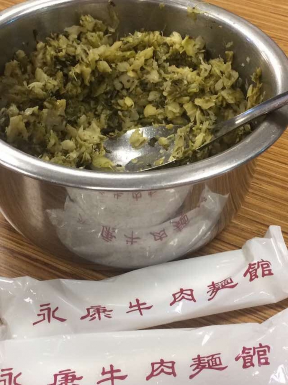永康牛肉麺で念願の牛肉麺を食べました。隣の老夫婦が永康牛肉麺の定番メニューの牛肉麺ではなく、なぜかとんかつのほうの麺を食べていたのは疑問でした。小さいおかずに茄子と、トマトのを選びました。おいしかったです。