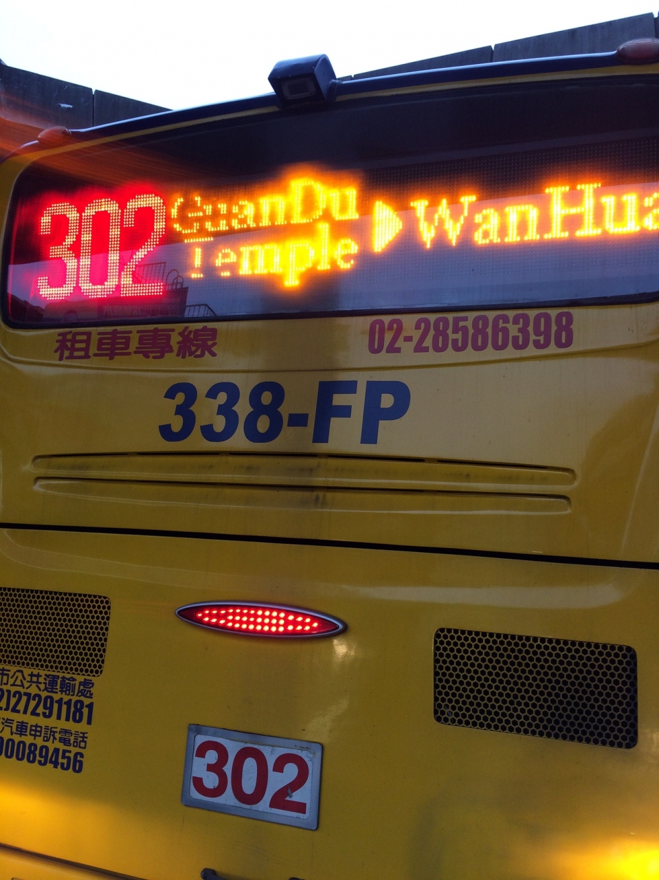 台北市内を走るバスの車体についている広告には、日本のアニメや映画や、商品の広告が多かったです。電光掲示案内が導入されて「あと何分でバスがこの駅に入ってきます」といった表示がされるバス停が増えてきました。