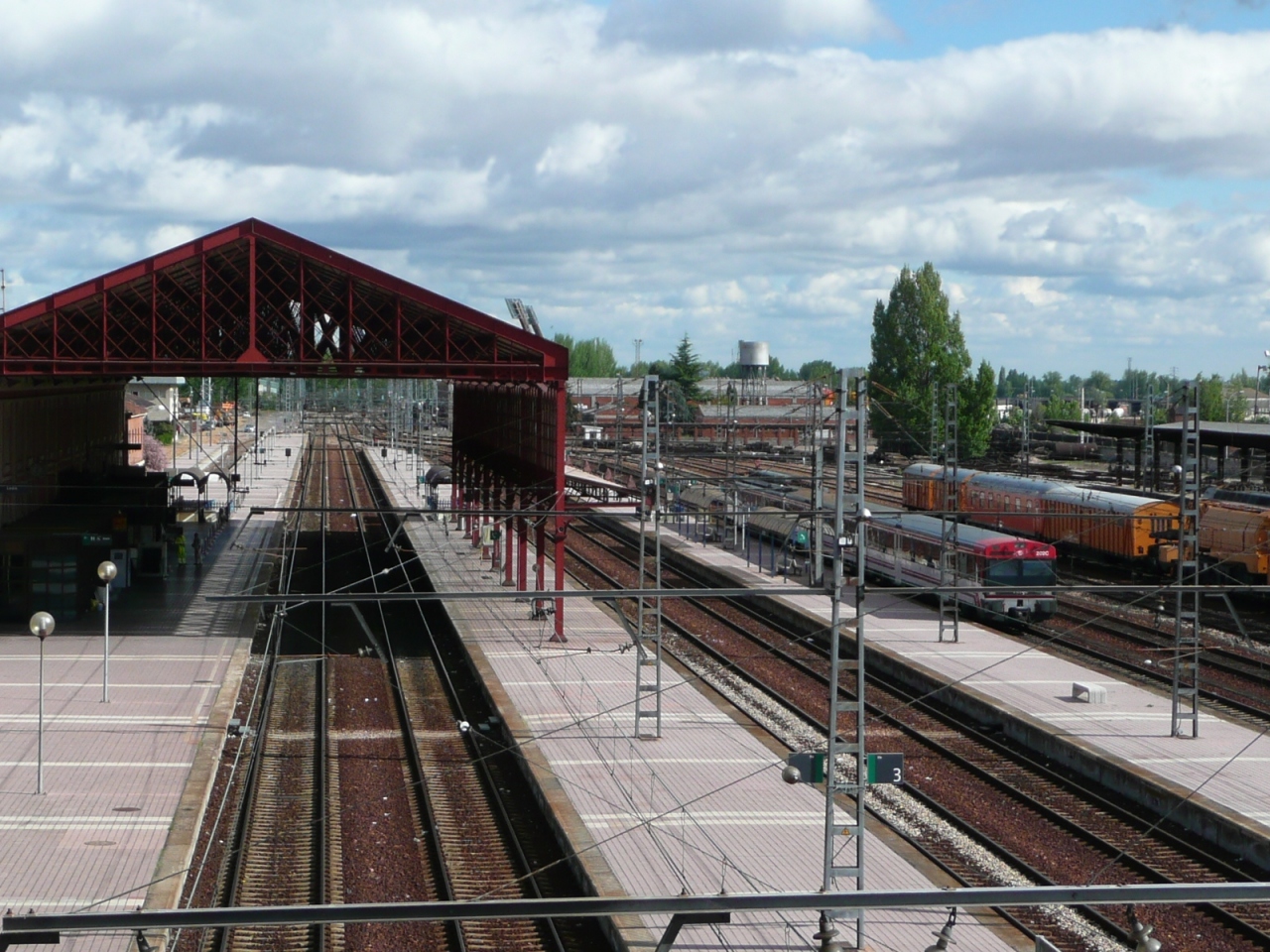 サンティアゴ巡礼でスペインのレオンに立ち寄った折に、新市街にあるホテルに一泊しました。このホテルから南に向かって歩くとベルネスガ川がありますが、その川に架かるレオネス橋を渡ったところに、この駅がありました。