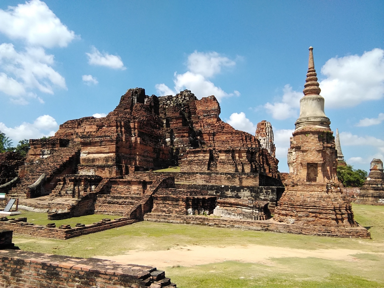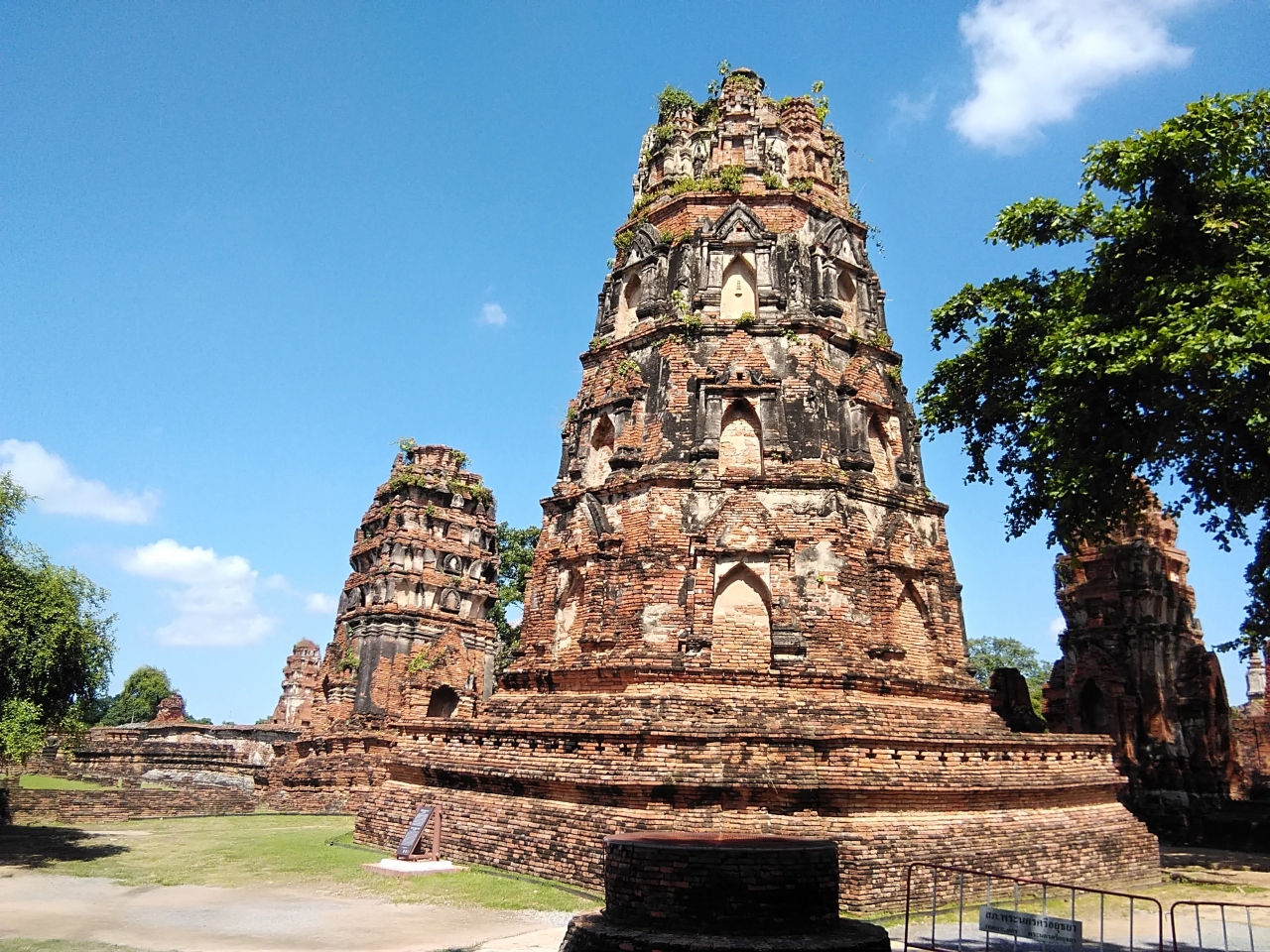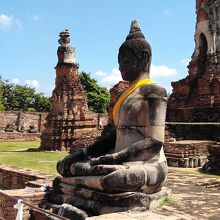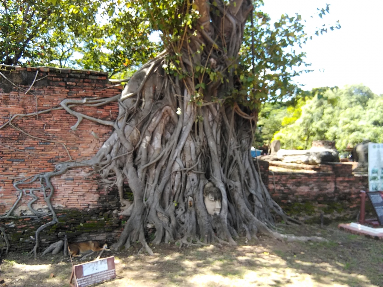 木の根の間に埋め込まれた仏像の頭に哀愁が感じられる寺院です。アユタヤ観光で一番最初に訪れました。観光客の皆さんが仏様に失礼がないように、座って一緒に記念撮影をされていました。私も記念に写真を撮らさせて頂きました。
