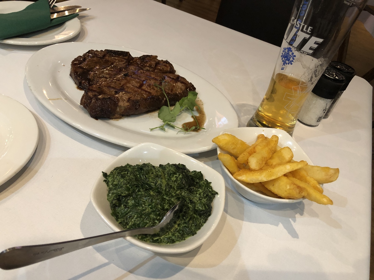 2日目はT-boneに挑戦。500gが290ZAR。サイドメニューとしてクリームスピナッチをチョイス。