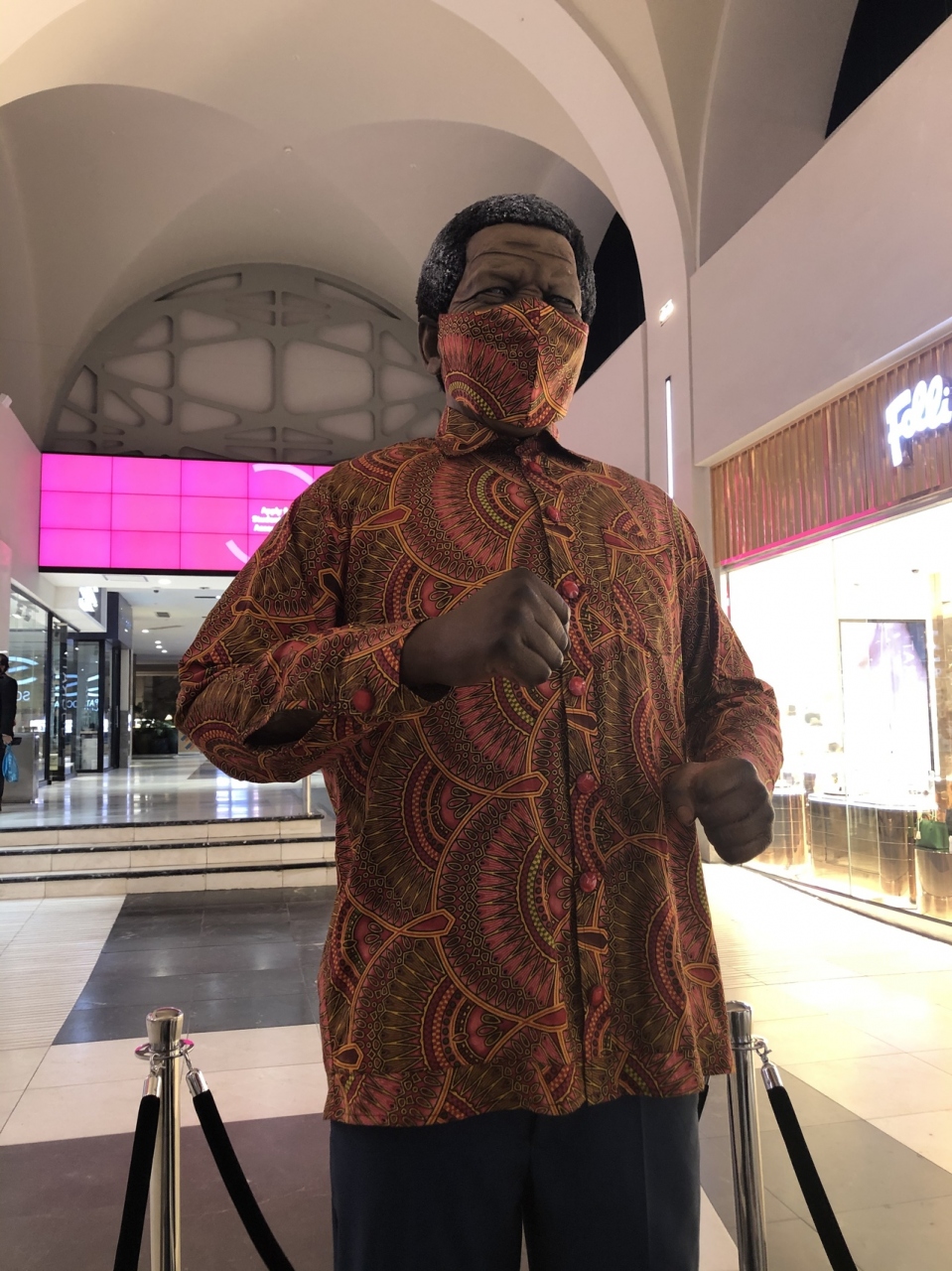 コロナ禍のため、マンデラもマスクをしてお出迎え。