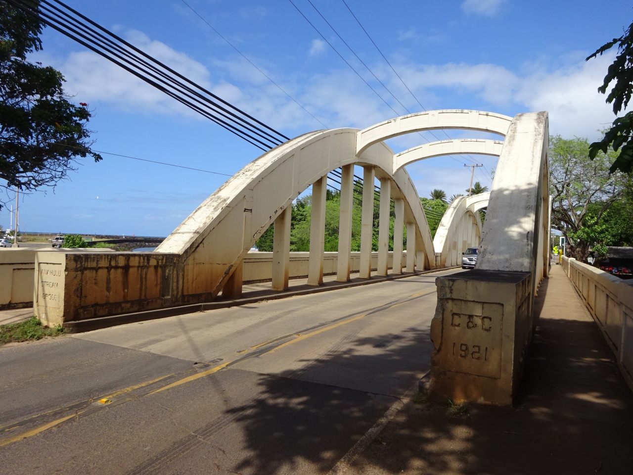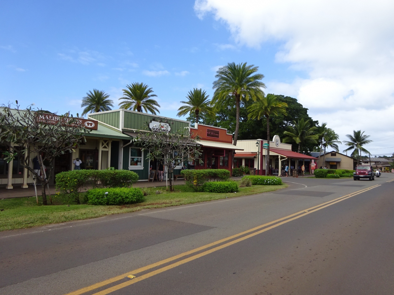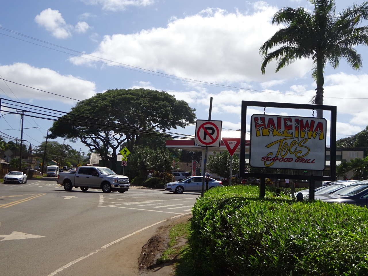 ハレイワはこじんまりとした町並みで、メインの道路が片側1車線で結構狭くて歩道も狭かったです。
