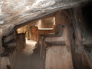 ケンコーは、クスコ郊外にあるインカ時代の遺跡です。周辺の遺跡と合わせてバスと徒歩で回りました。祭礼場だったそうで、巨石の下の洞窟にはいけにえを捧げた台などがあります。