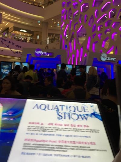 アクアモールにある噴水広場。4階の約20メートルの高さから水が落下してくる噴水ショーでう。昼12時からちょこちょこ行われています。時間が書いてあるのでショッピングの合間の時間に合わせてみるといいです。噴水ショーのために行くほどはないです