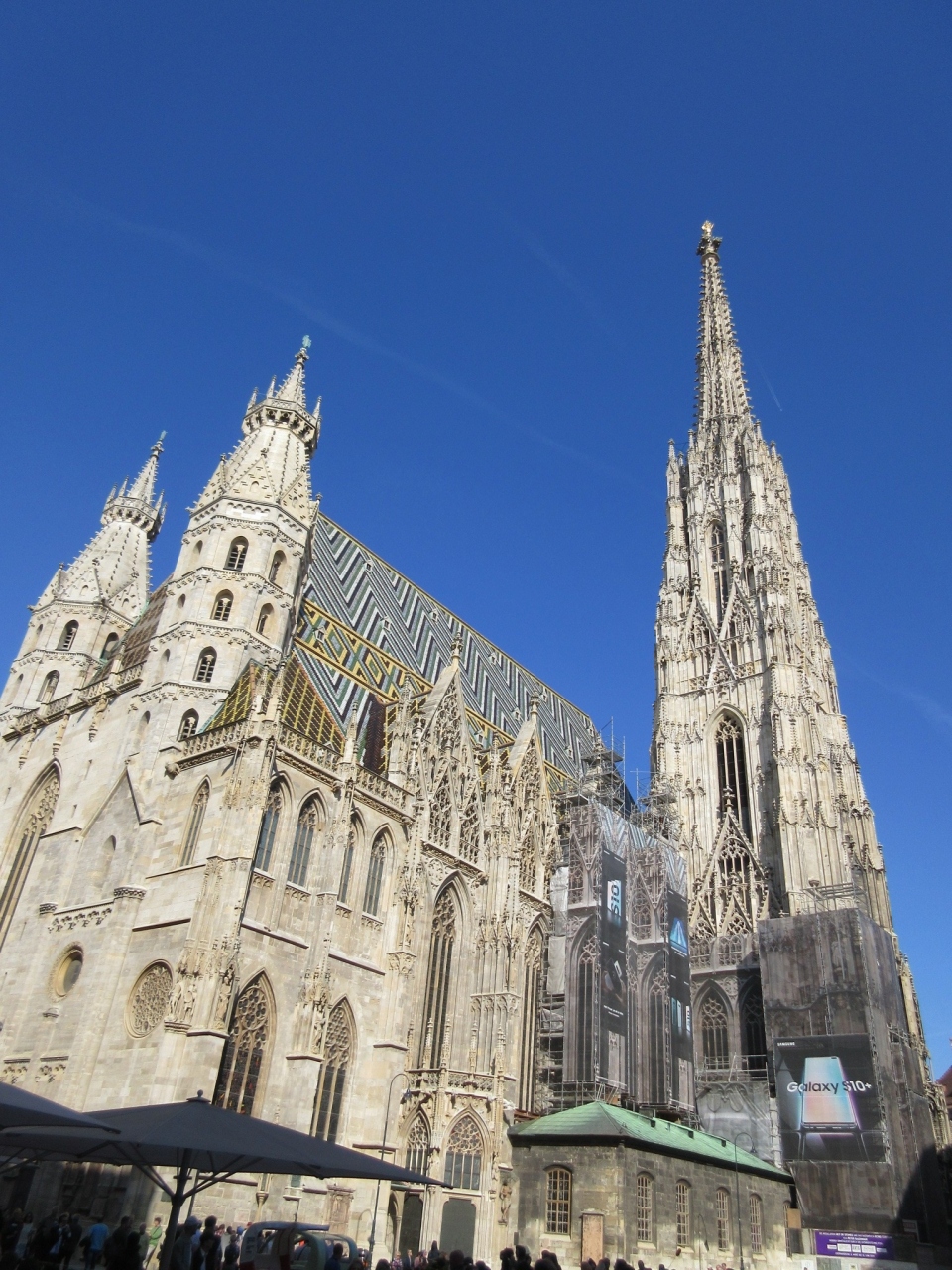 ウイーン中心部でひときわ目立つシュテファン大聖堂。下から見上げると圧倒されます。