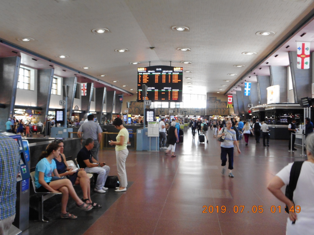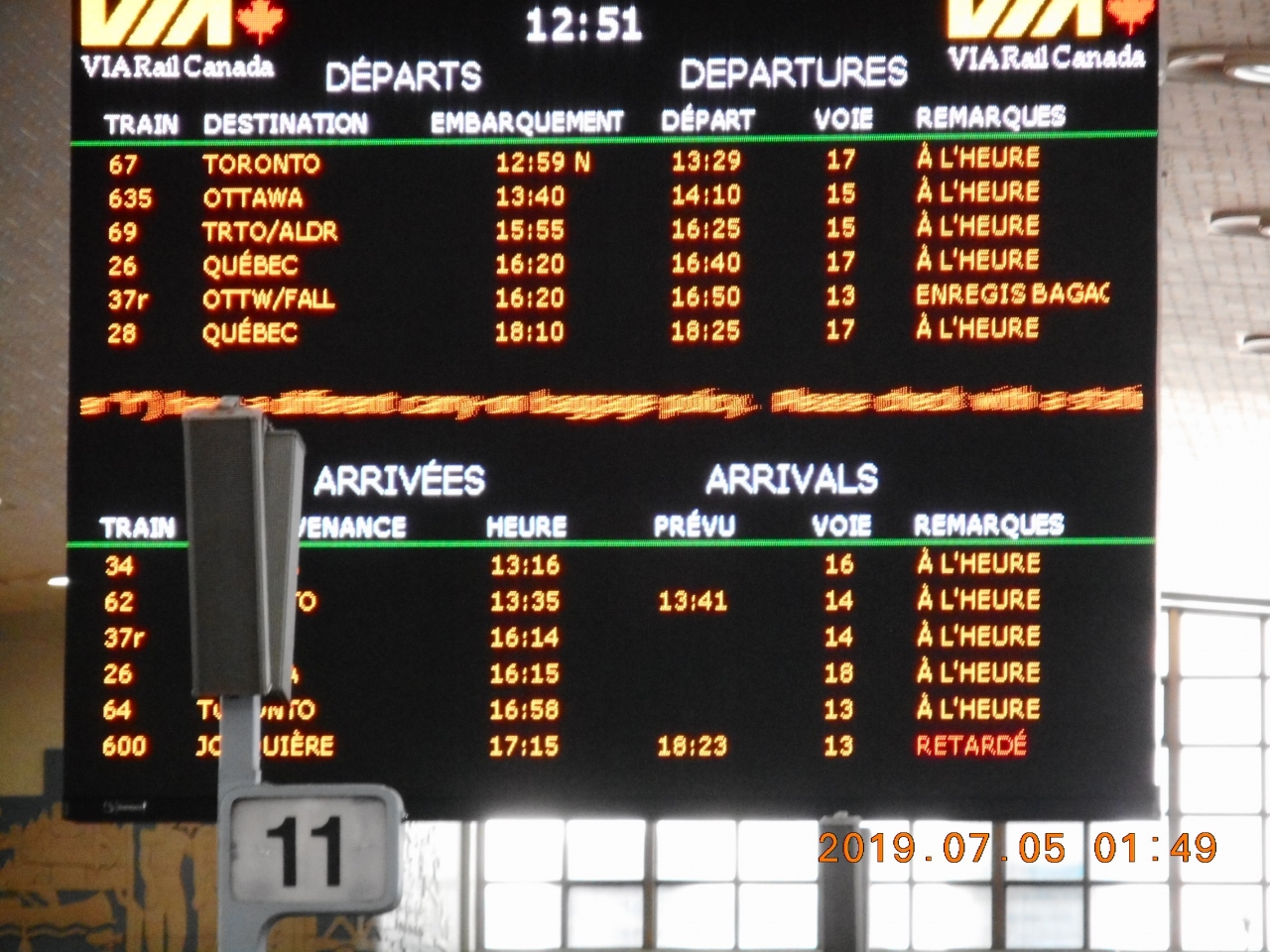 世界の女王マリア大聖堂(マリー・レーヌ・デュ・モンド大聖堂)のすぐ近くにありました。教会を見学した後、駅の様子を見に行きましたが、座る場所がないくらいに待っている人達で混んでいました。前回は、トロントから列車でモントリオールに来たので懐かしかったです。