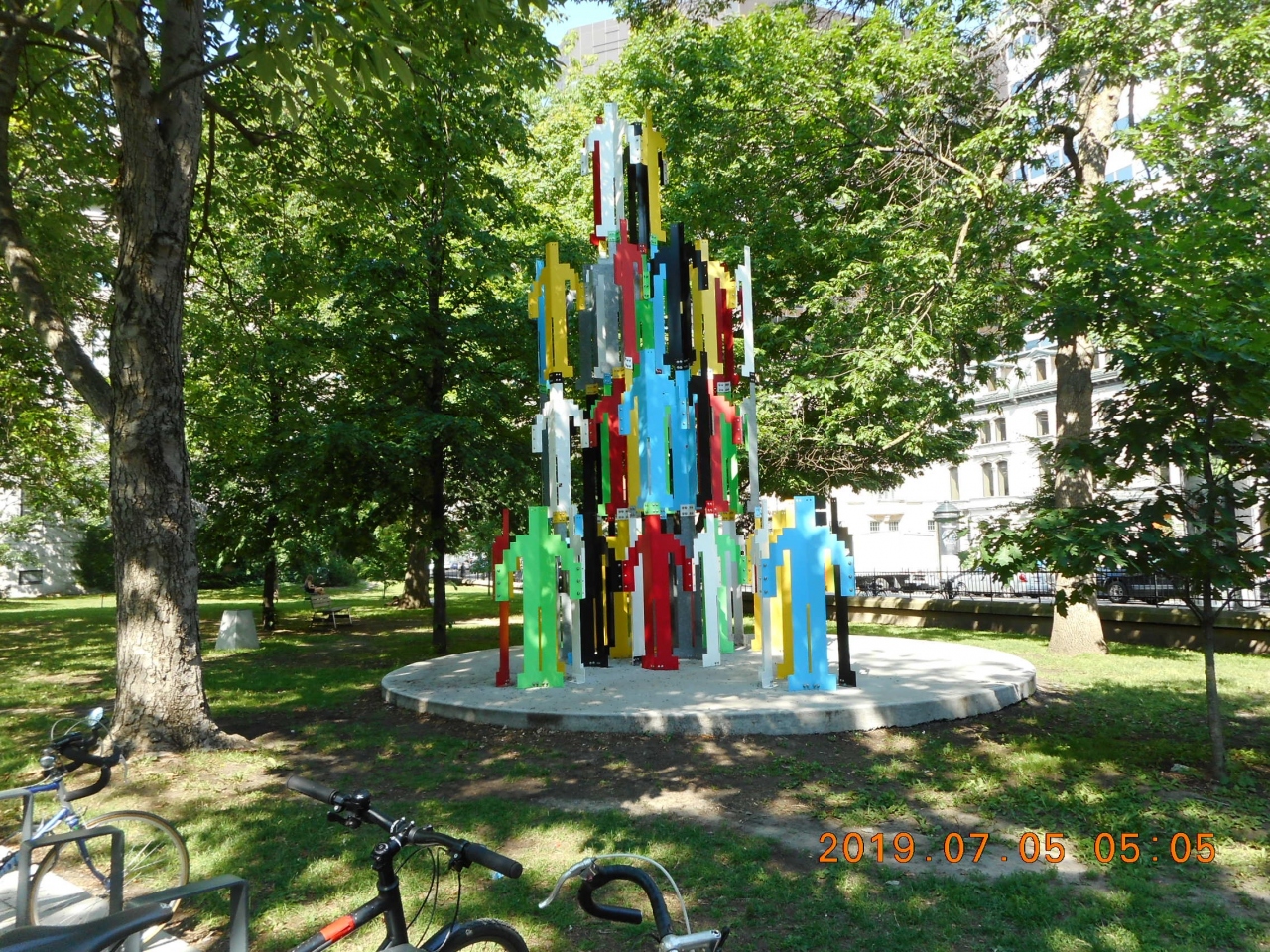 モン・ロワイヤルの東に広がるマギル大学の建物はあっちもこっちおマギル大学と言う感じでした。特に印象に残ったのは、シェルブルーク通りに面したロディックゲートでした。ロディックゲートから真っすぐに伸びる道路の奥にマコール・マクベイン人文棟があり、ゲートを入ってすぐ右にはカラフルな人型のオブジェなどもありました。