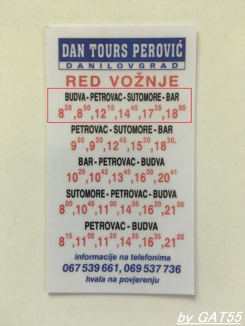 ブドヴァからスベティ・ステファン行きのバスは、旧市街近くの時計塔発のローカルバスで行けると某地球の〇き方には記載がありますが、ブドヴァのバスターミナルからバールへ向かう長距離バスもスベティ・ステファンのバス停(幹線道路沿いでローカルバスのバス停とは別の場所)に停まります。