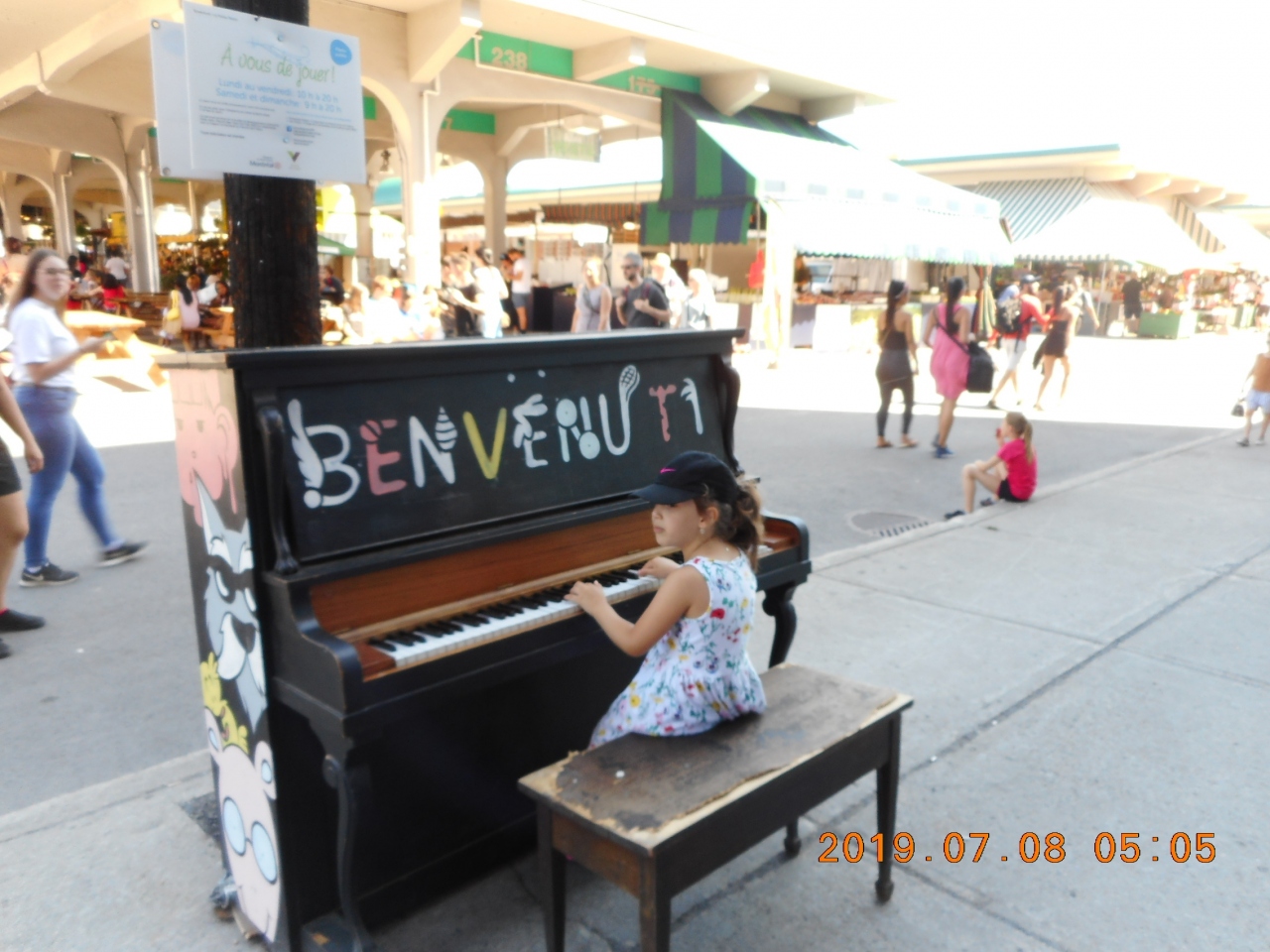 私達はメトロのジャンタロン駅からジャンタロン市場に行きましたが、帰りはカステルノー駅まで歩きました。距離は同じくらいでした。ジャンタロン市場はモン ロワイヤル公園の北西辺りになります。地元の市場と言う感じでした。空港ピアノならぬマーケットピアノがあり、小さな子供が弾いていました。