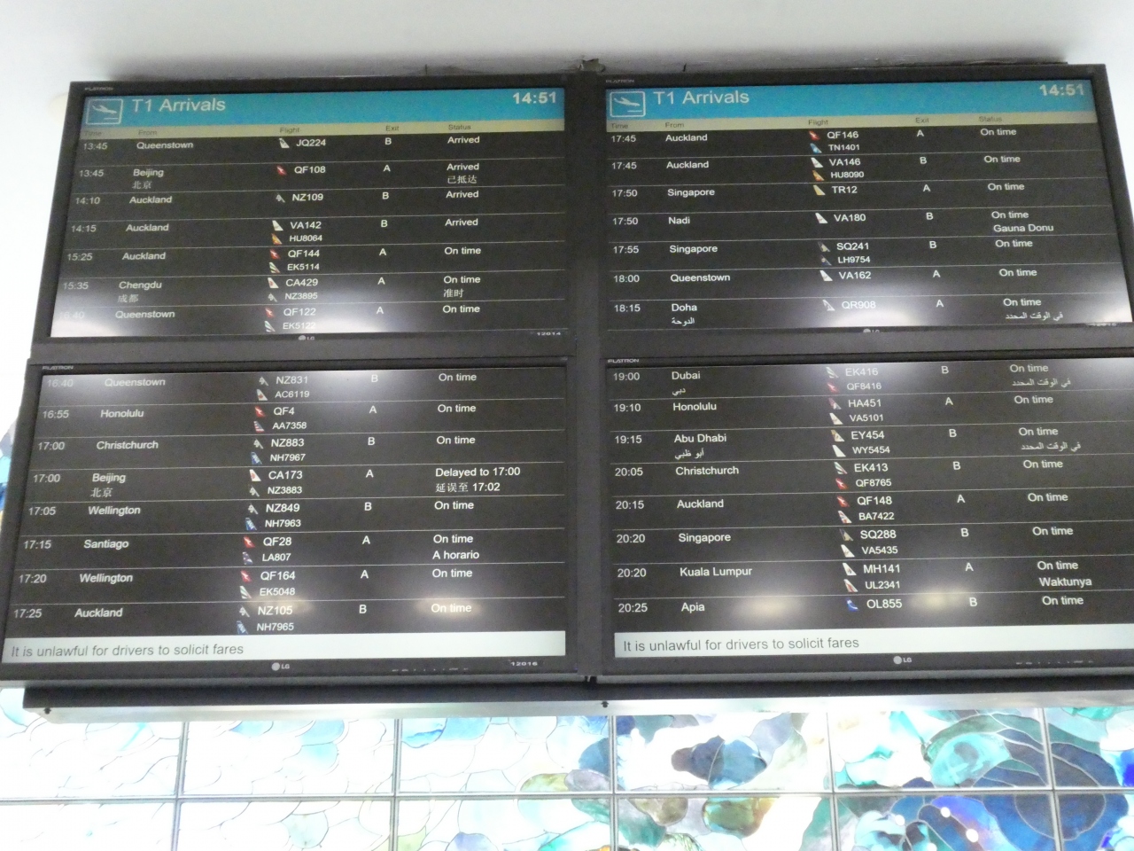 ニュージーランド航空109便でオークランドから午後遅い14:10に早着しました。