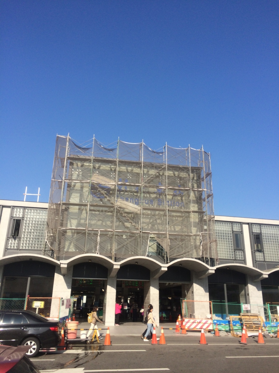 台湾鉄道の快速列車がとまる、そこそこ大きい駅です。でも、駅前にはほとんど何もありませんでした。しかも、駅は思い切り工事中でした。駅の上にエスカレーターで登れるスペースがあり、そこから線路を見下ろすことができました。