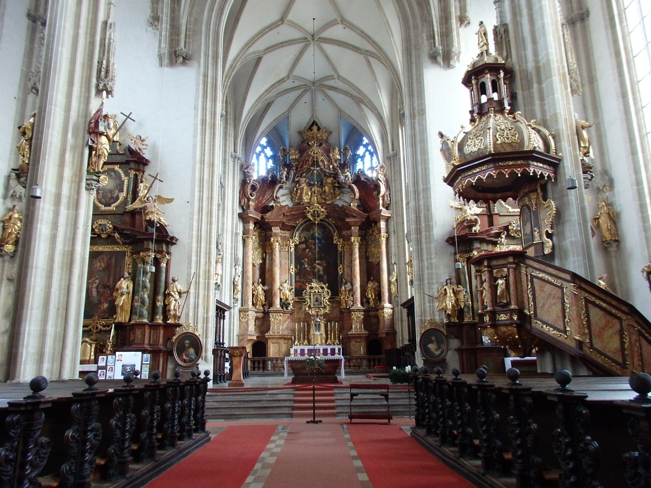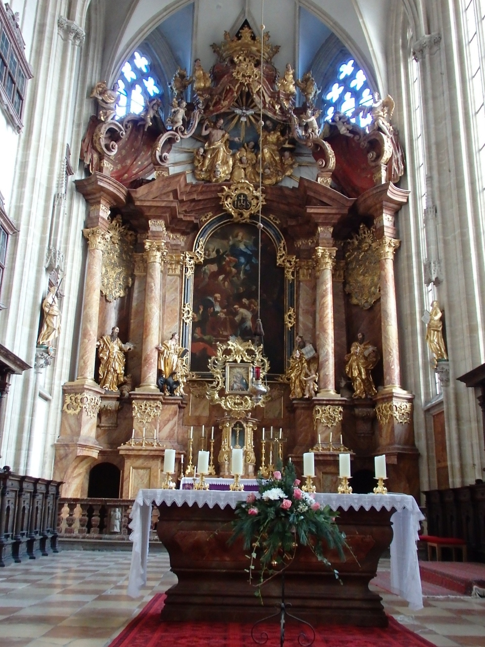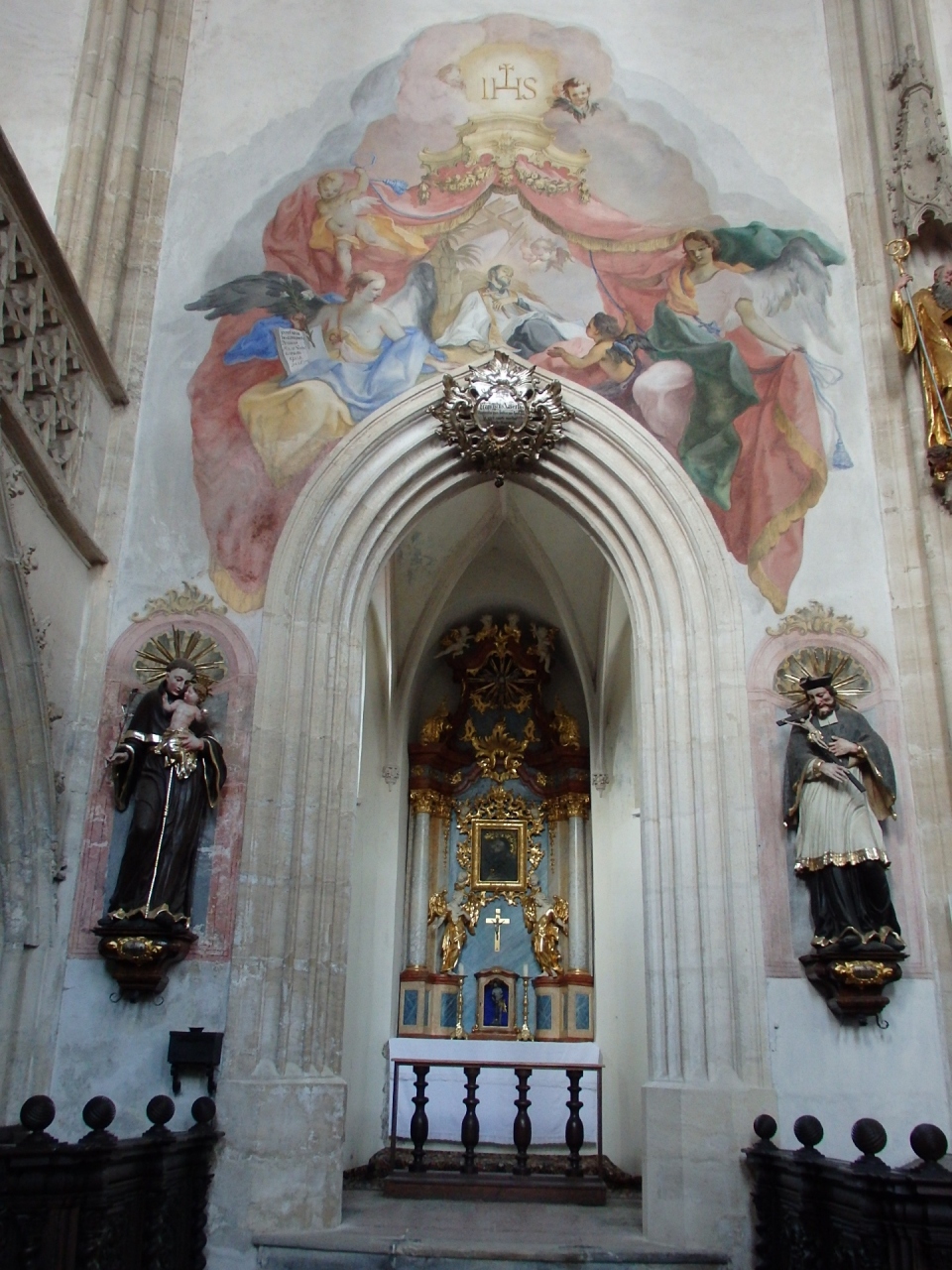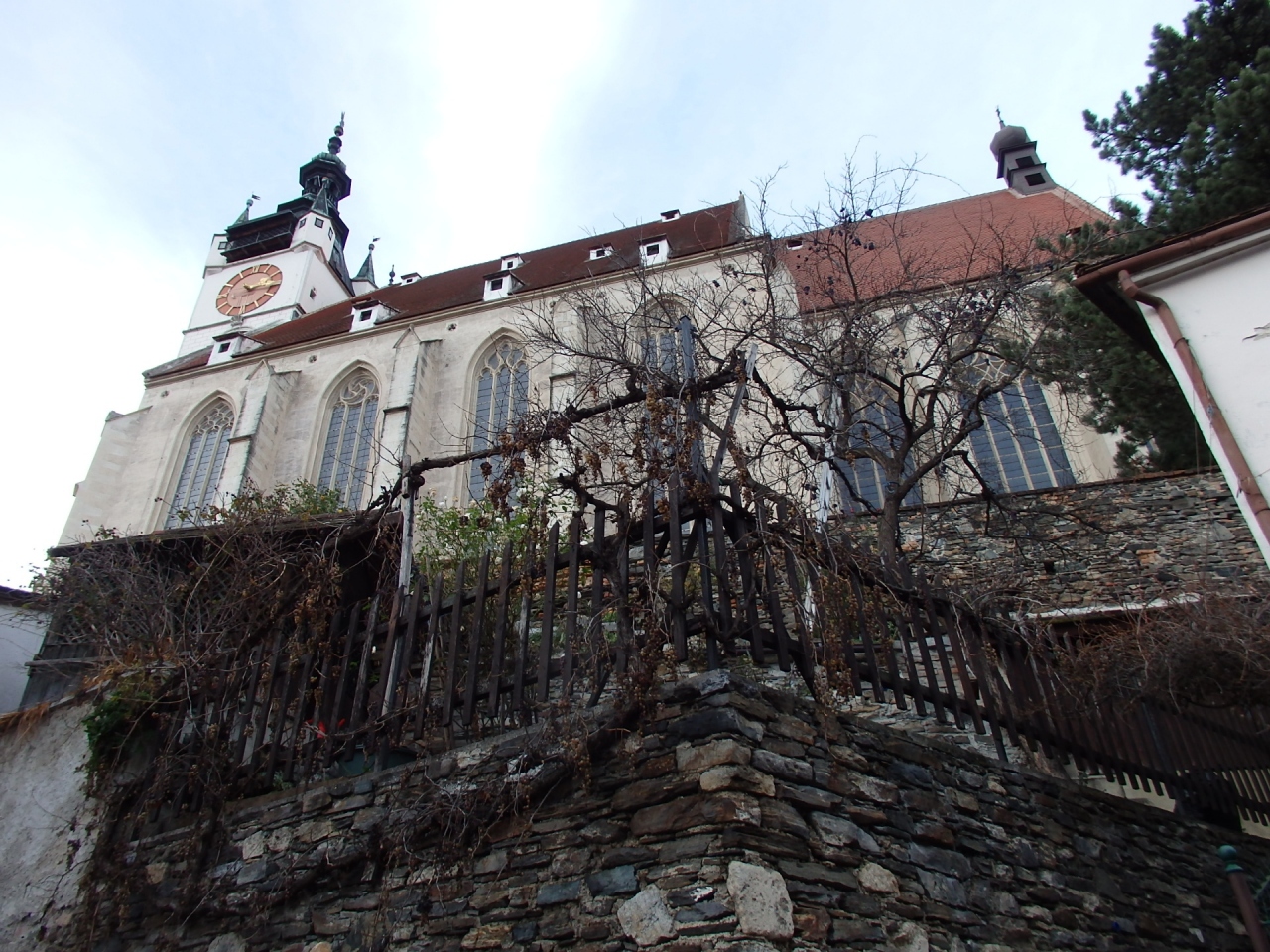 この教会は、17世紀に後期ゴシック様式で建てられ、ウィーンにあるシュテファン大聖堂の姉妹的な教会とのこと。