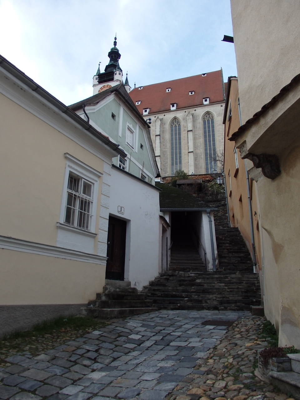 市庁舎裏の教区教会近くの石段もしくはその横の屋根付き階段を上っていくとピアリステン教会に行けます。