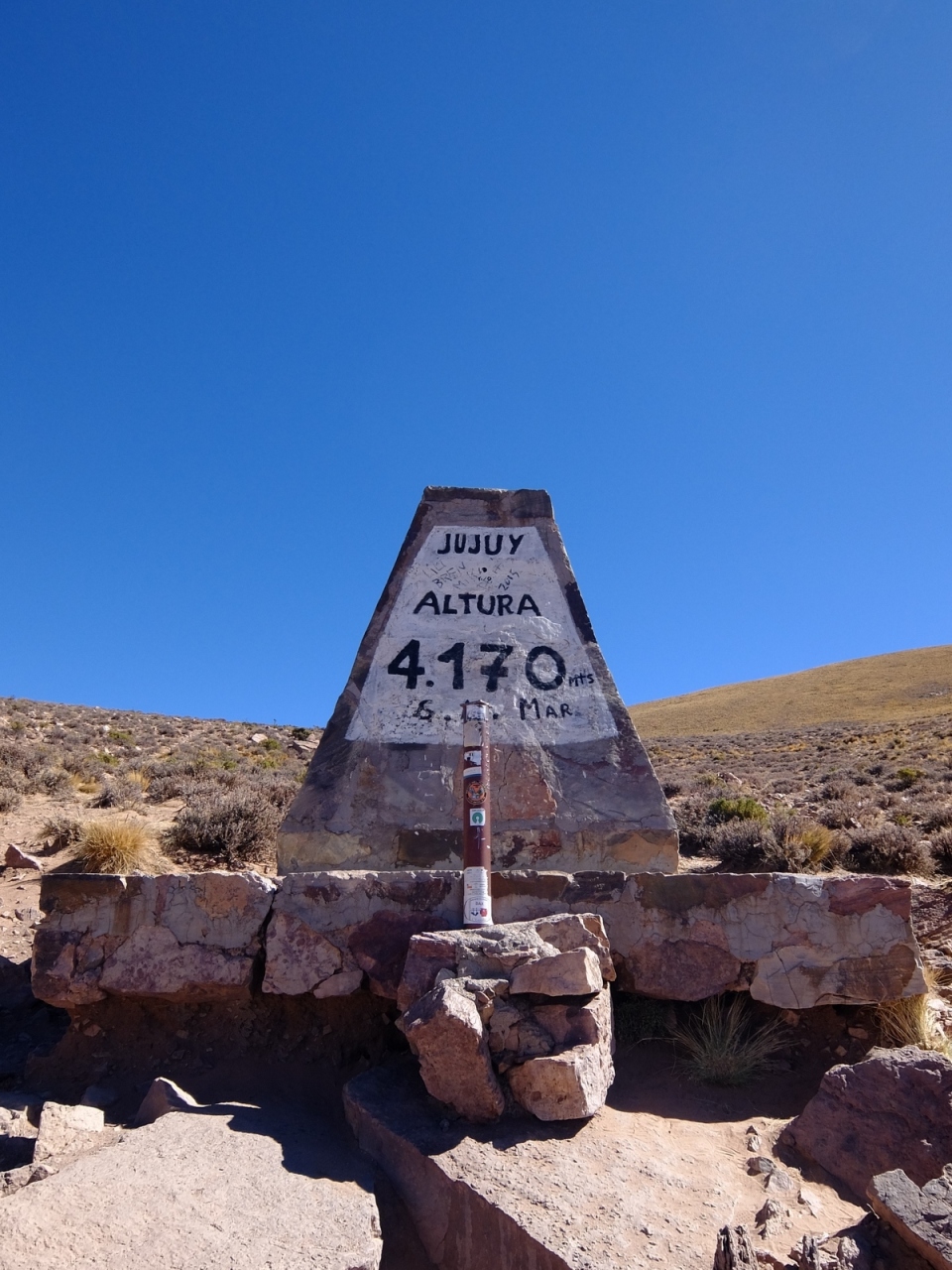 ツアーでサルタやフフイから日帰りでサリーナス・グランデスを訪れる際に止まって観光する地点の一つです。記念写真を取るのにもってこいの石碑のほかに、土産物を並べている店が数件あり、自分でドライブする観光客も合わせてなかなかの混み具合です。付近ではグアナコやビクーニャも見られます。高地なので夏は涼しく冬は寒いですが、日差しが強いのでちょっと立ち寄るにはちょうどいい加減です。