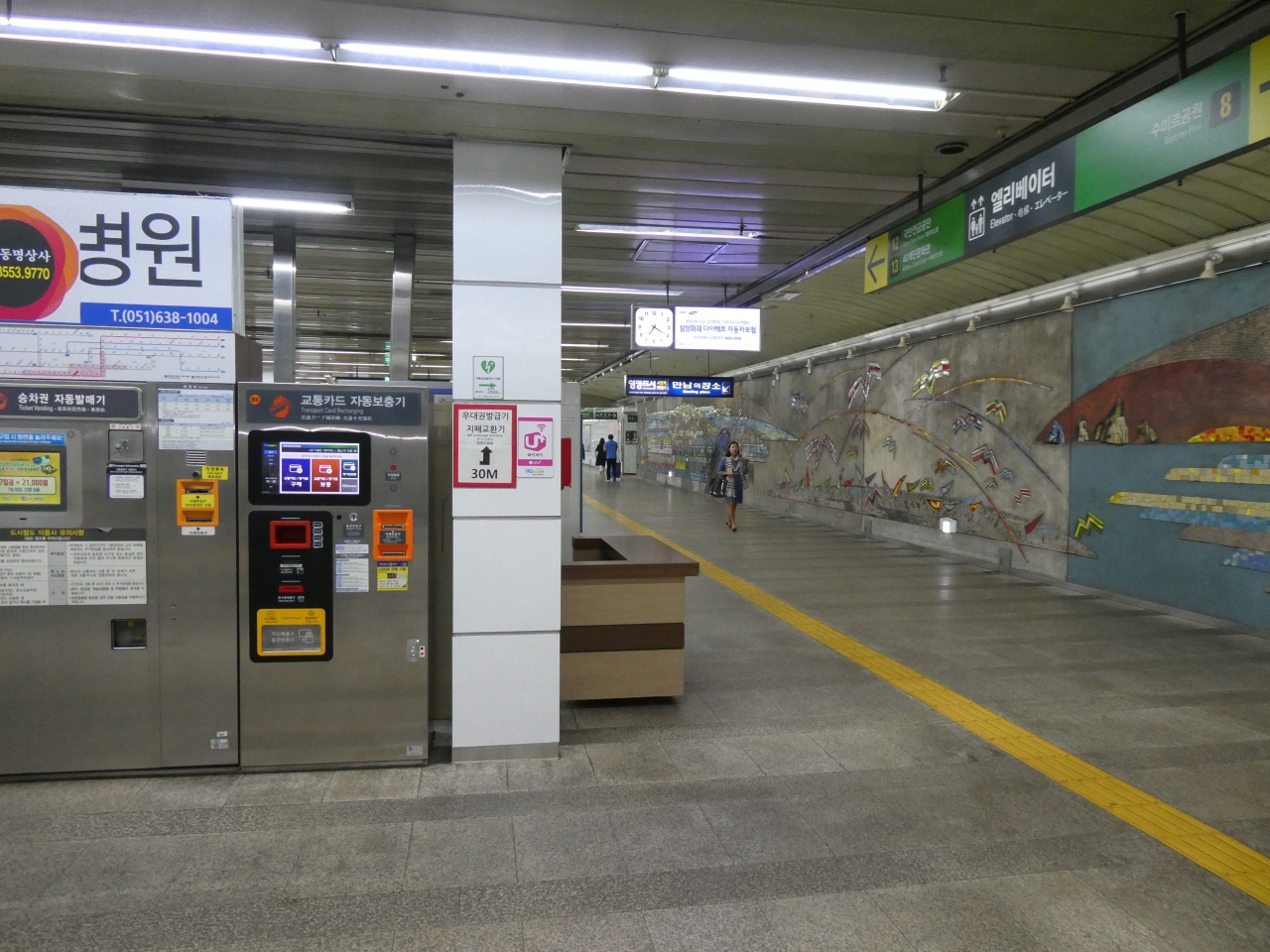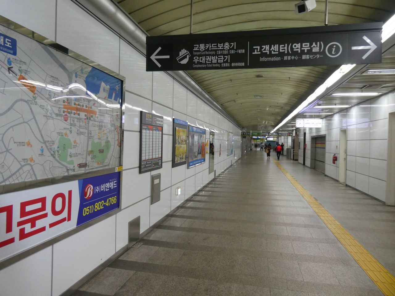 オレンジ色がラインカラーの地下鉄1号線の駅になります。釜山駅と観光地で有名なチャガルチ駅との丁度間の駅です。