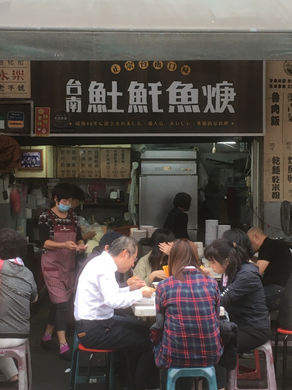 永楽市場の向かいにあります。同じような大きさのお店が4件くらい並んでいました。どこも同じくらいの人の量でした。70元くらいで食べれるのと、魚のつみれが大きくて丸いのが良かったです。割り箸じゃないのも良かった。