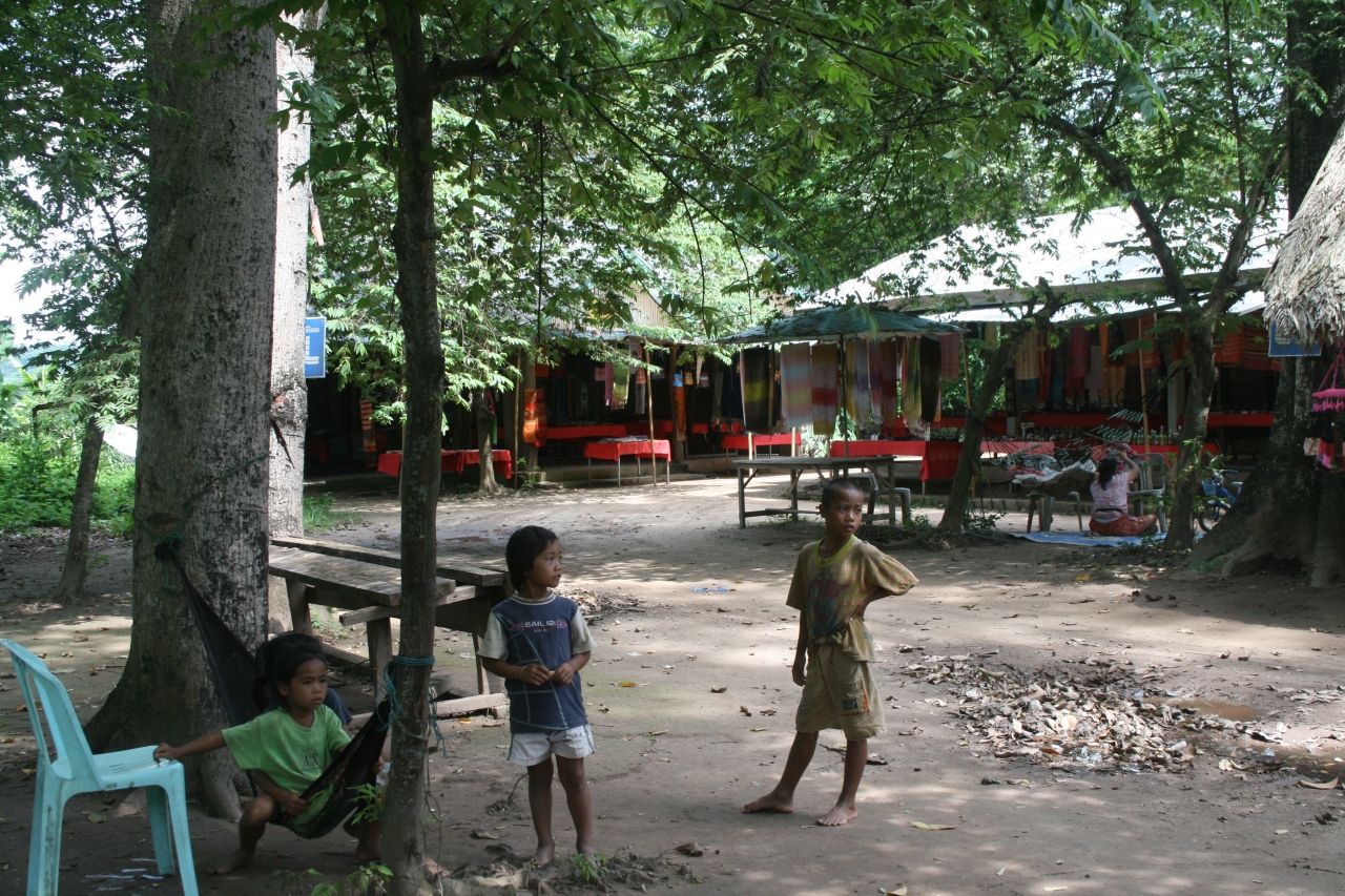 ここは「入国」の際にパスポートもいらず、お土産物店が多いラオスの村に入れます。