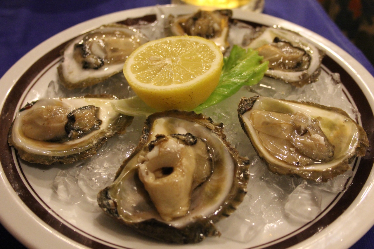 旧市街のレストランが並ぶ通りにあるシーフードのレストラン。屋内もありますが、通りに面した席も多く、町並みやゆきかう人を眺めながら食事が楽しめます。地元のオイスターをオーダーしました。ちょっとこぶりの一口サイズでした。