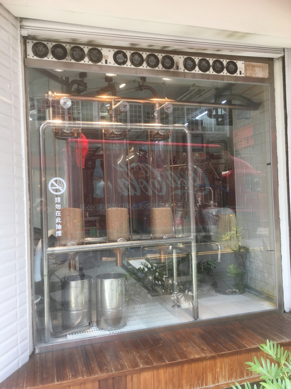 二吉軒豆乳は、前に訪れた時よりもおしゃれになっていました。木製のテーブルがロングで、店の面積は大きくはないものの、結構人が座れるようになっていました。豆乳が作られる過程みたいのも多少のぞくことができました。