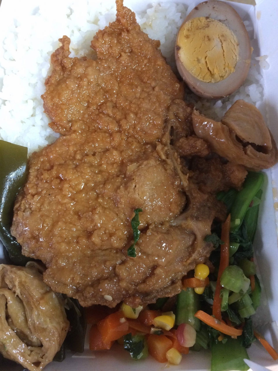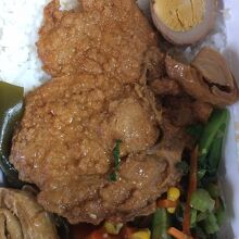 基隆夜市は、名前は夜市なんですが、昼間から開けているお弁当屋さんやグルメの屋台があったので、台湾鉄道で台北市から到着してから遅めのお昼にあずかることができました。大きな揚げ物がご飯の上にどかんと載っていました。