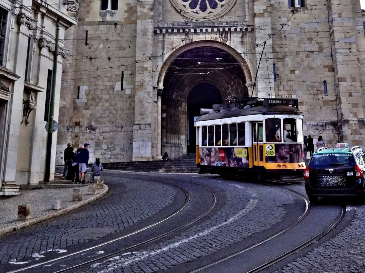 ラルゴ・ダ・セー通りLargo da Séは、リスボン大聖堂とサン・アントニオ教会の間にある、古い建物が並びショップも点在していてリスボンらしい素敵な街並みがある短い通り。トラム#12/28が、緩やか曲がる坂道をゆっくりと登り降りしていた。大聖堂を背景にしてトラムが走る画像がリスボンらしいというので、トラムを待つ人とカメラを持った観光客で賑わっていた。