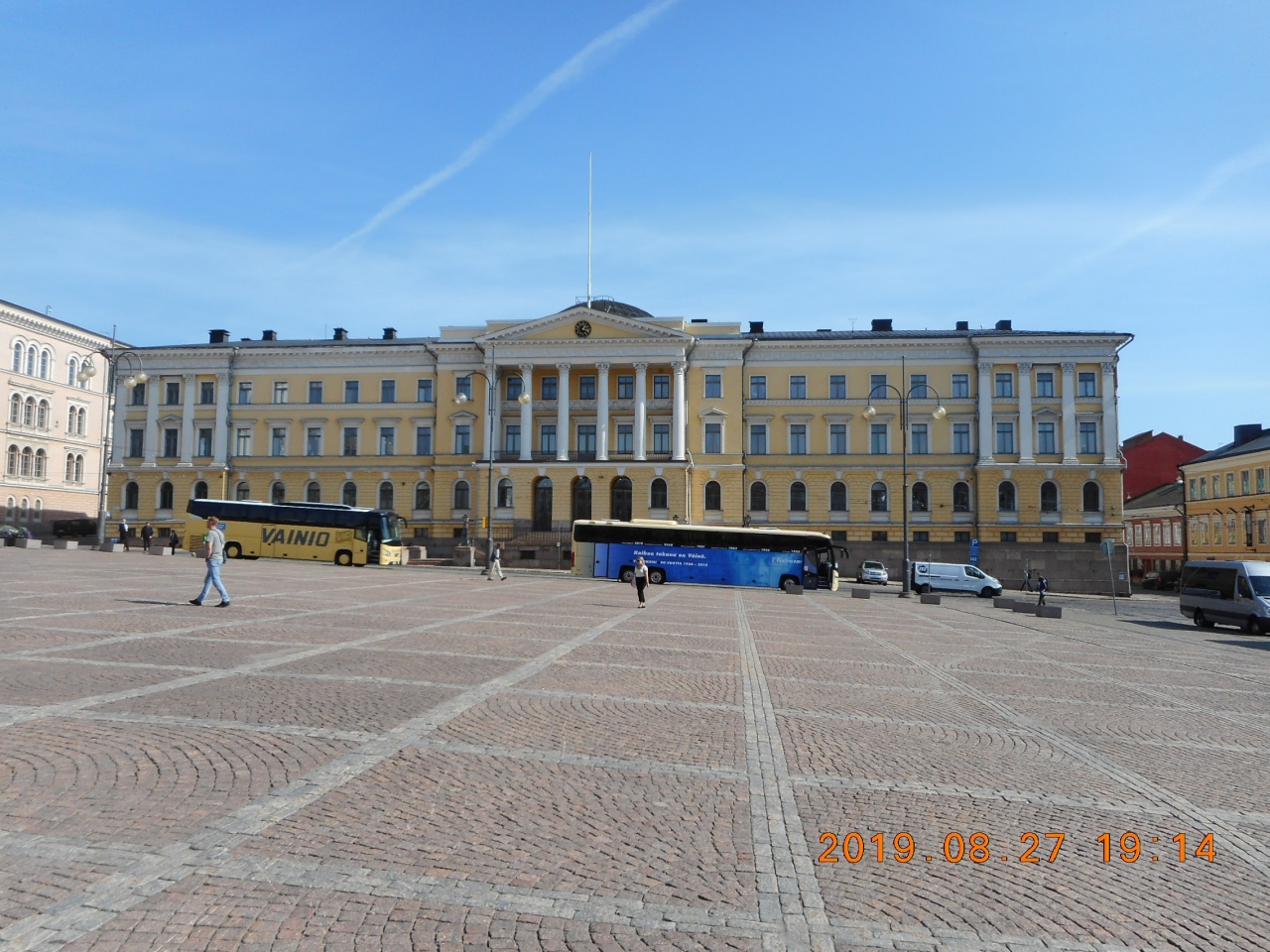ヘルシンキ観光で立ち寄りました。元老院広場の東隣に建つ大きな建物です。地図には首相官邸と表示されてましたが、ガイドブックには上院と書かれていたので、複合施設かもしれません。元老院広場とスネルマニン通り(Snellmaninkatu)を挟んで向かい合っているので、英語のsenateなら上院ですね。