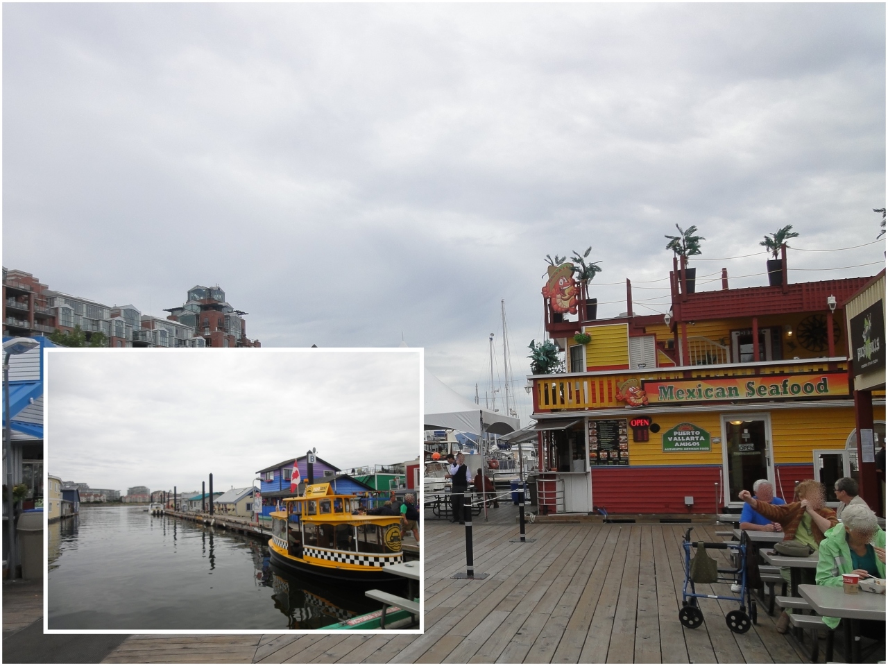 ヴィクトリアのインナーハーバーにも、小さいながらもフィッシャーマンズワーフFishermans Wharfがあった。市街地からは、水上タクシー、または徒歩15分程で到着。カラフルな家や店が集まり、海の上に浮いていて、歩いていると若干揺れを感じることがあった。桟橋には魚屋、アイスクリームショップ、メキシコ料理店、そして有名なフィッシュアンドチップスの店などがあった。また、ここには野生のアザラシが生息しているようで、桟橋で餌あげている観光客もいた。