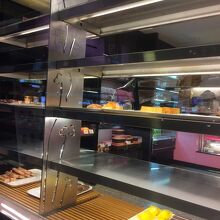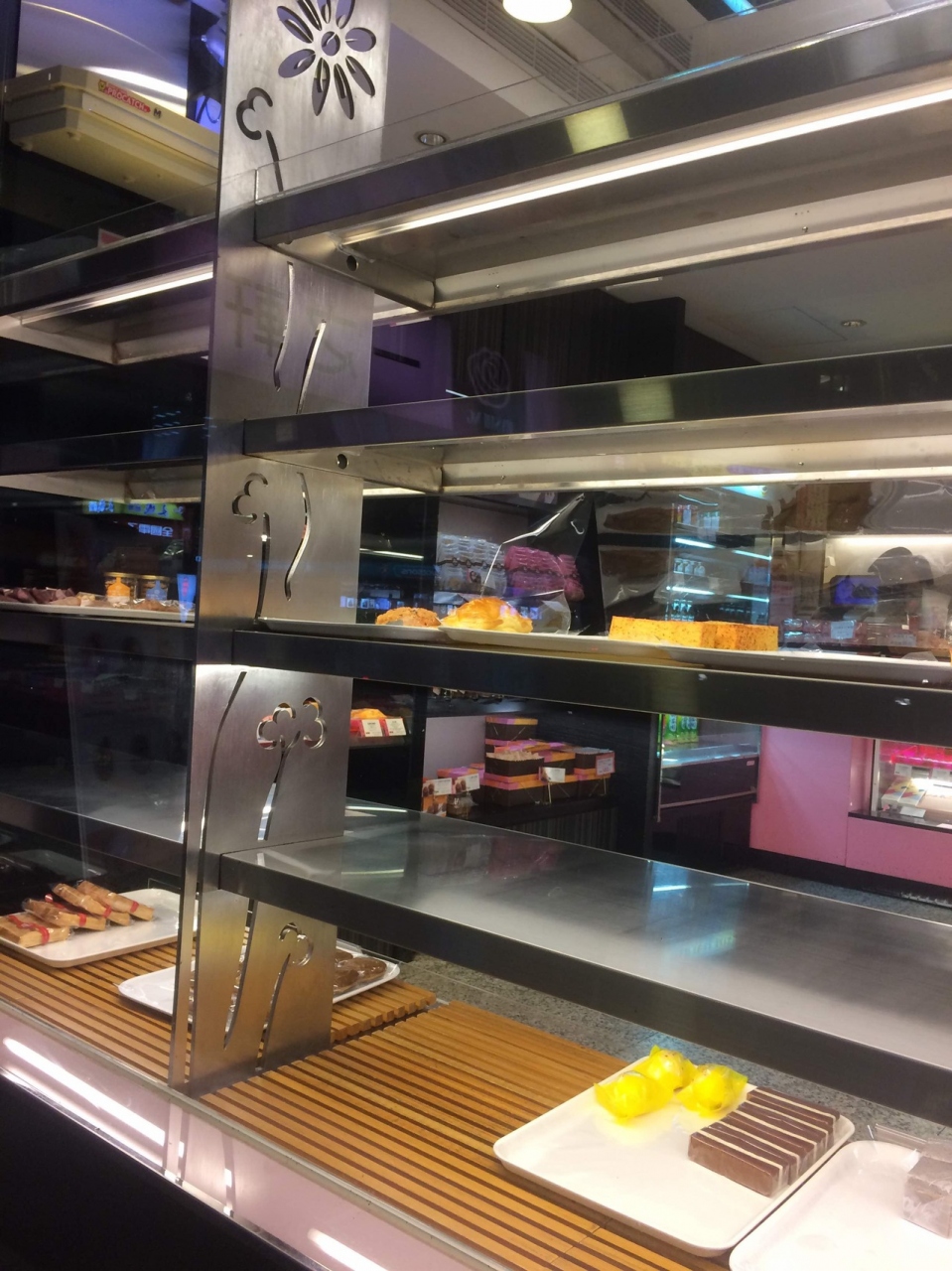 お店はピンクの看板で、カメリアみたいなお花のマークがついていました。パンとケーキが売っていました。他にも、個包装になっている月餅やまんじゅうみたいなものもありました。プリンは卵の味がしっかりして、おいしかったです。
